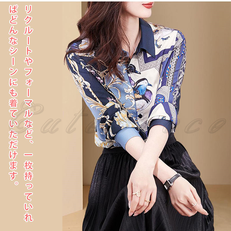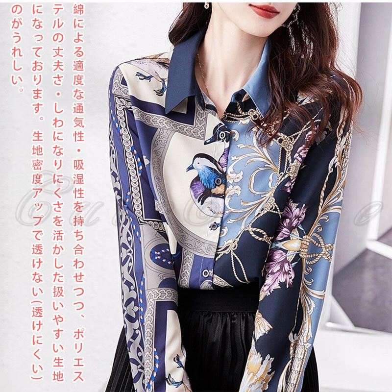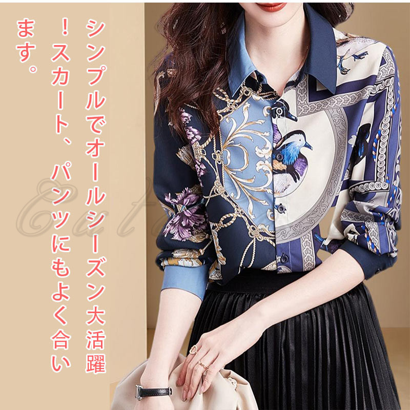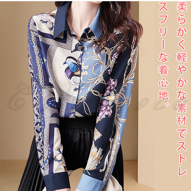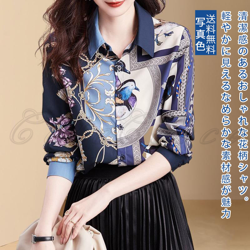 シャツ 花柄 長袖 レディース ブラウス 総柄 通勤 お洒落 事務服 オフィス 就活 大きいサイズ 結婚式 高級感 送料無料 ビジネス プリント シフォンシャツ