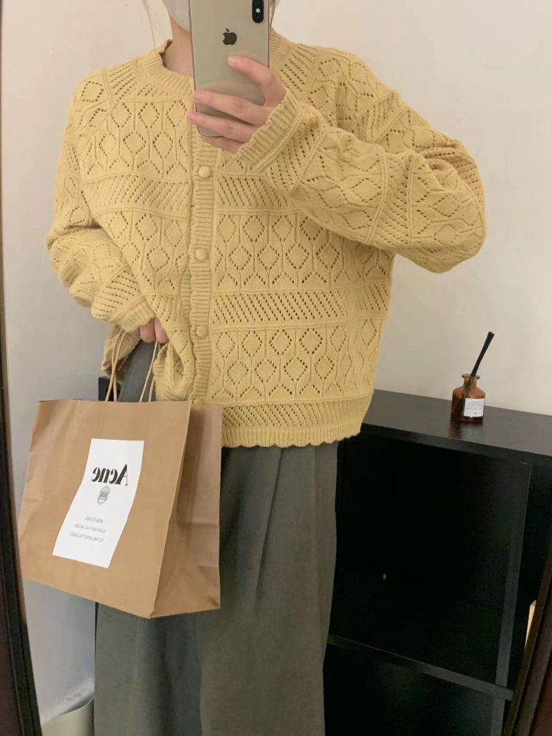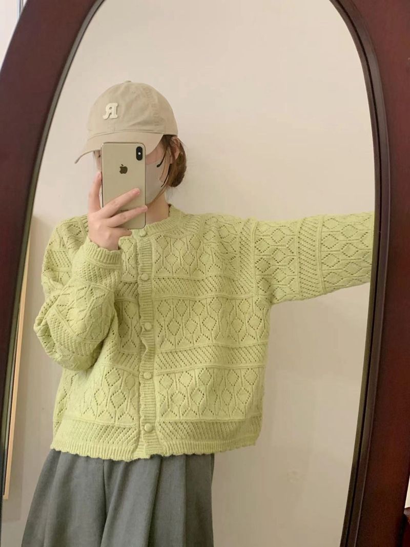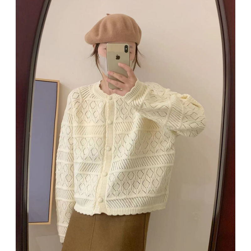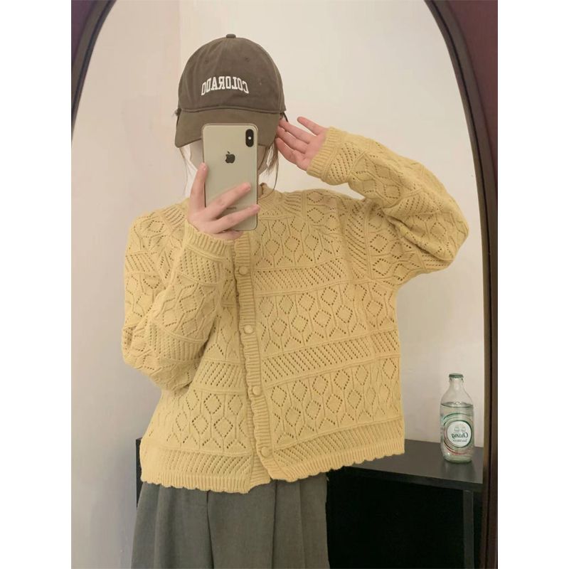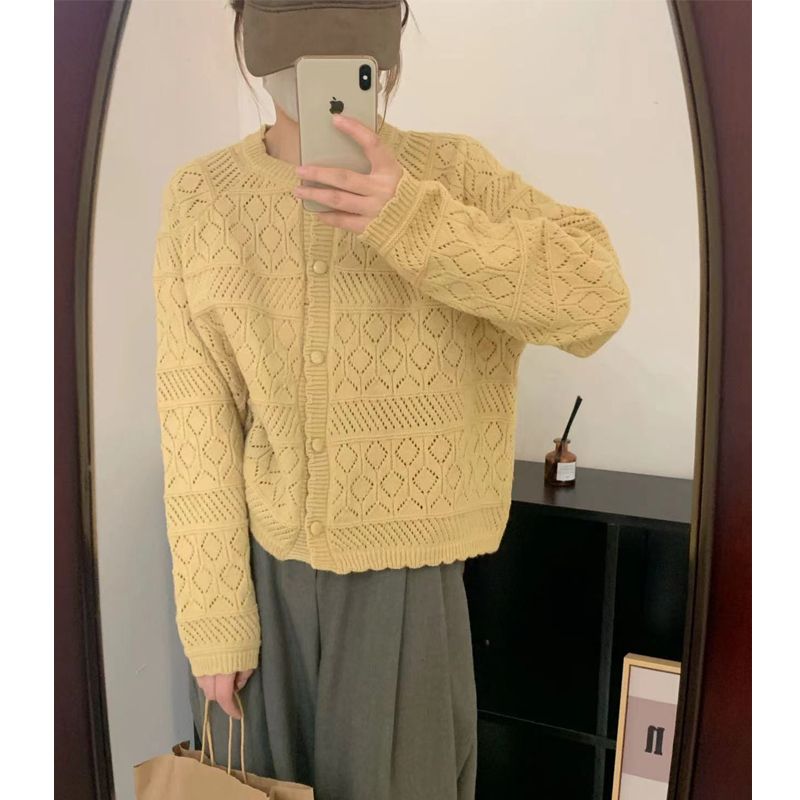 カーディガン レディース 長袖 ニットカーディガン メッシュ 薄手 カジュアル ショート丈 シンプル 羽織り 体型カバー 秋 韓国 春 おしゃれ