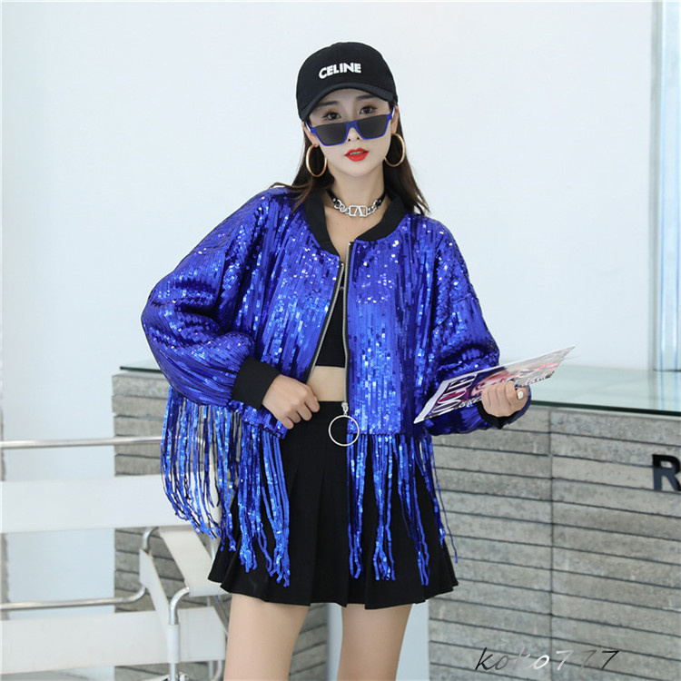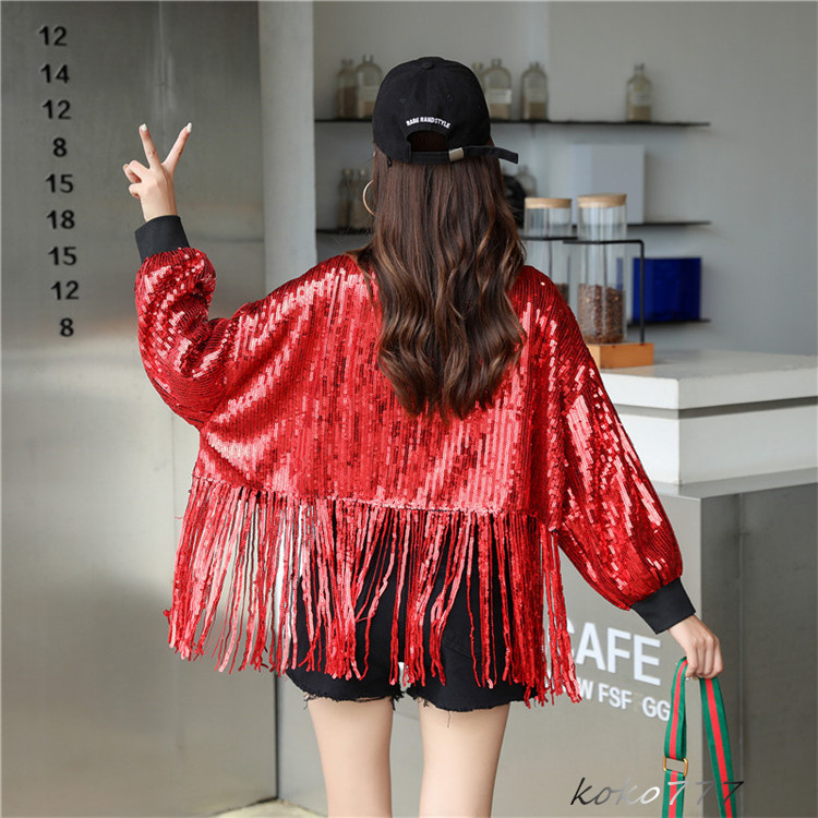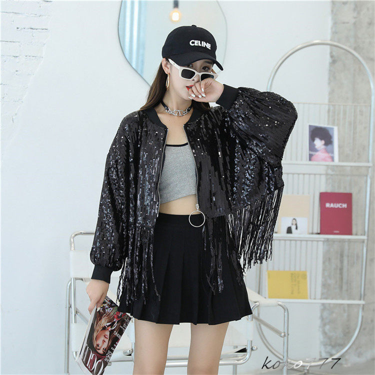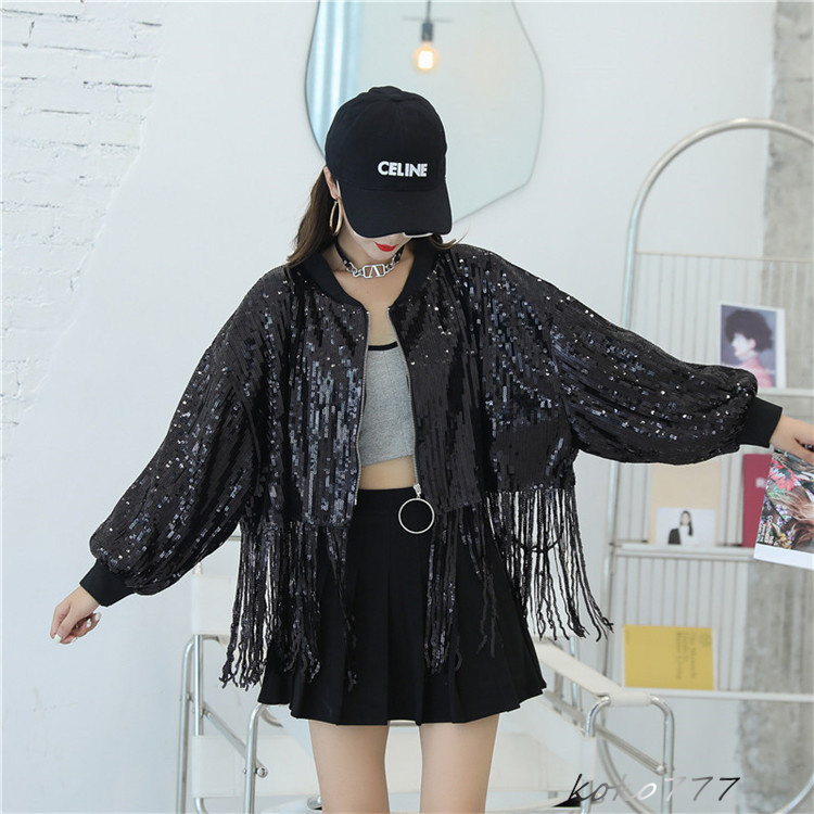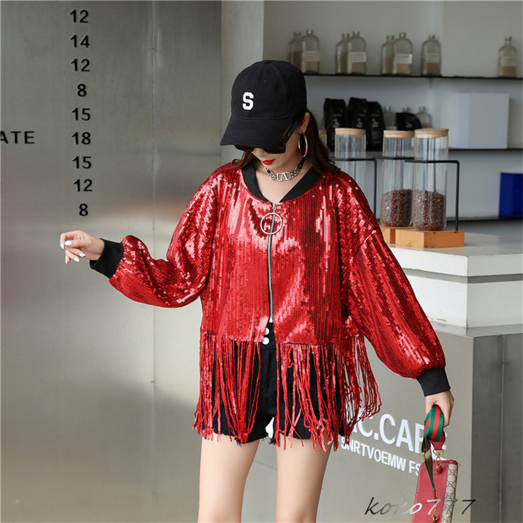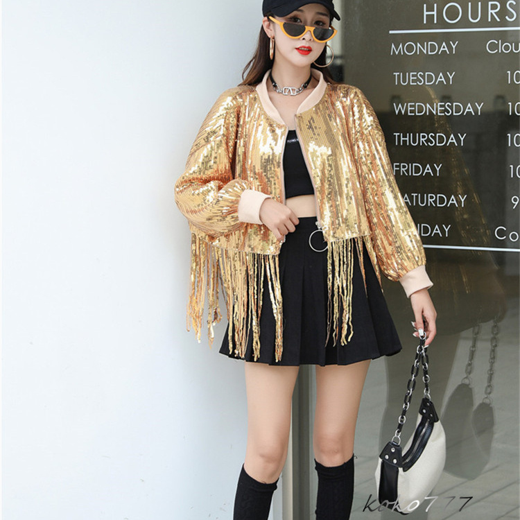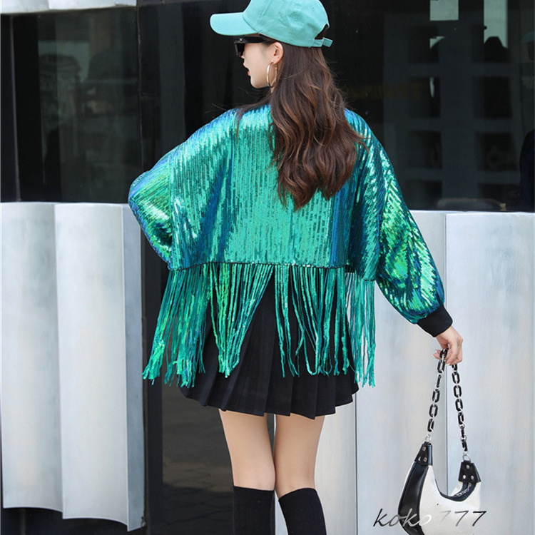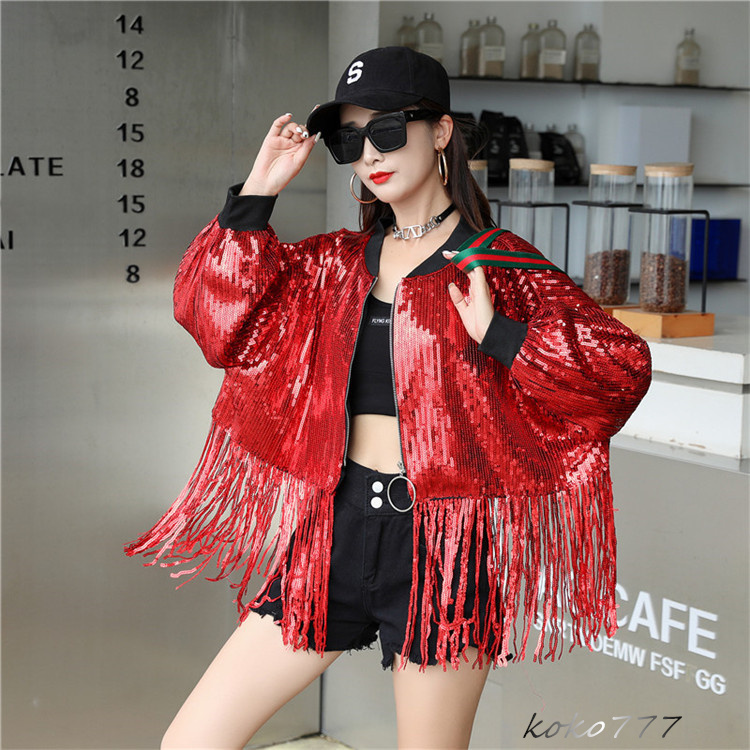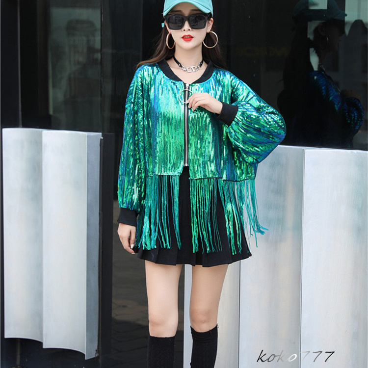 ジャケット レディース コート スパンフリンジ ダンスウェア ヒップホップ 女子外套 イベント 学園祭 舞台衣装 発表会 カジュアル 部活 アウター