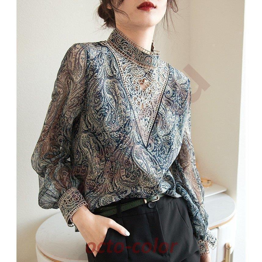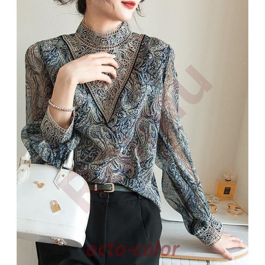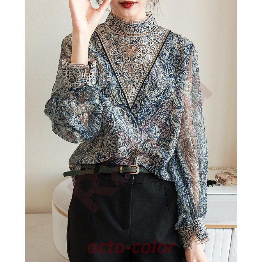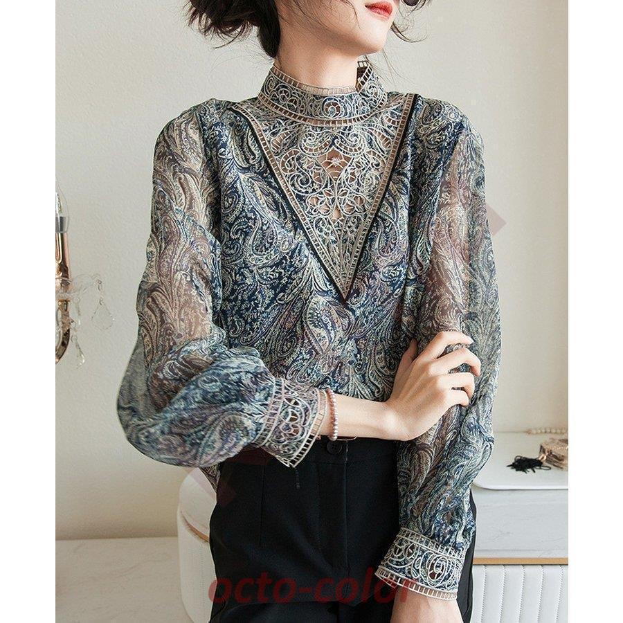 連携キーワード:ブラウス レディース 40代 春夏秋新作 オシャレブラウス レース刺繍シャツ 長袖トップス レション パフスブブラウス 大人 通勤 ゆったり シャツ30代 50代