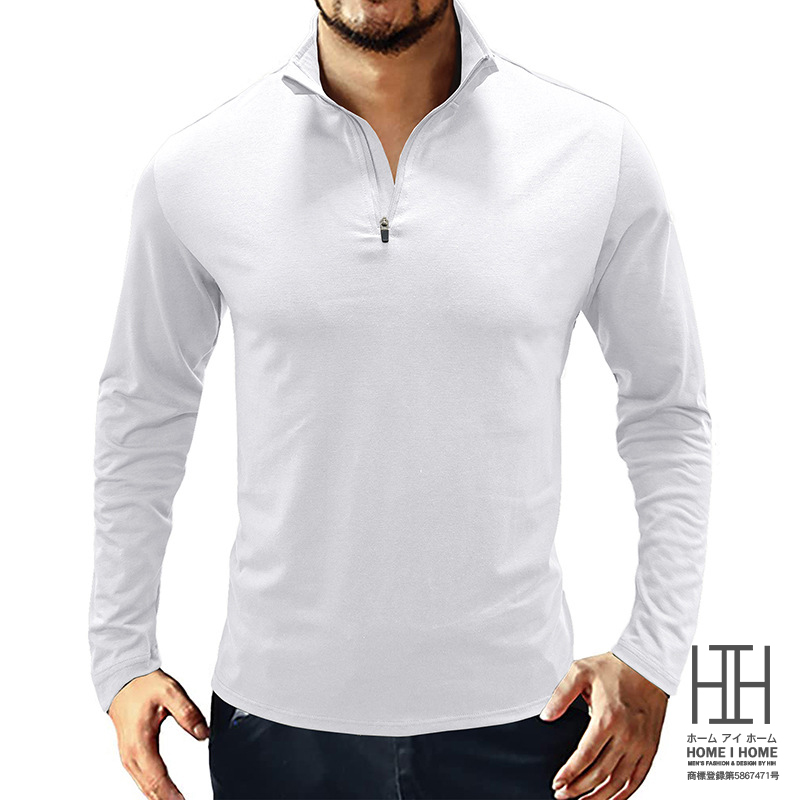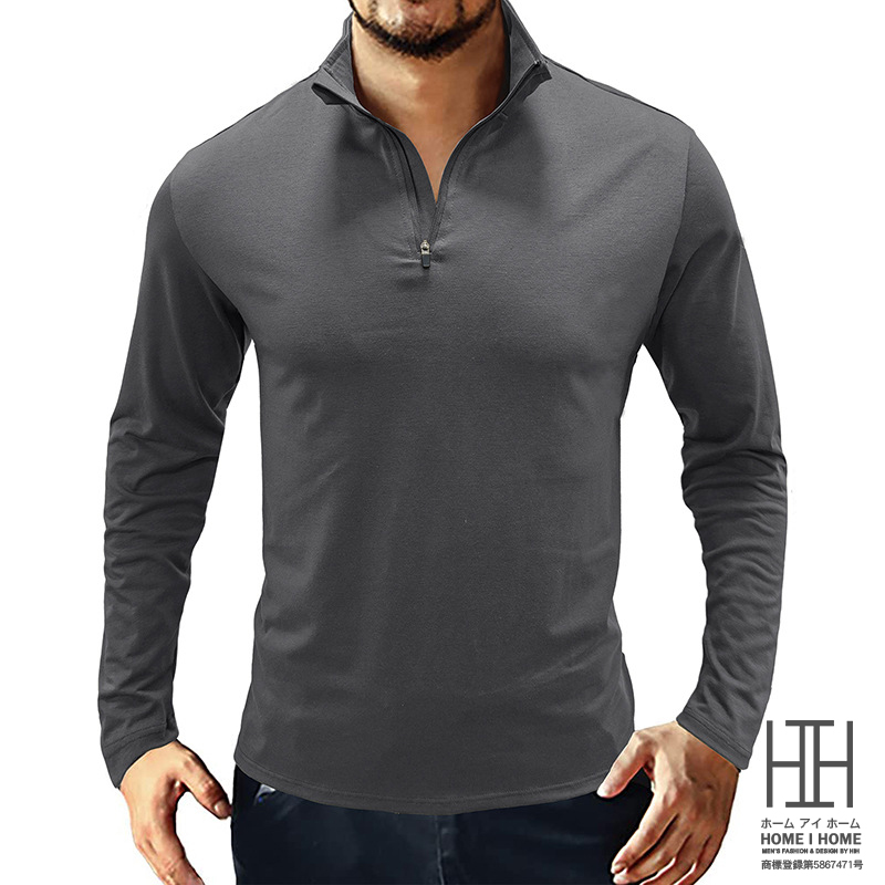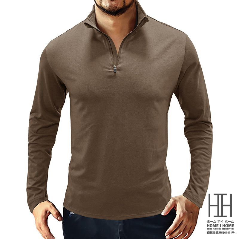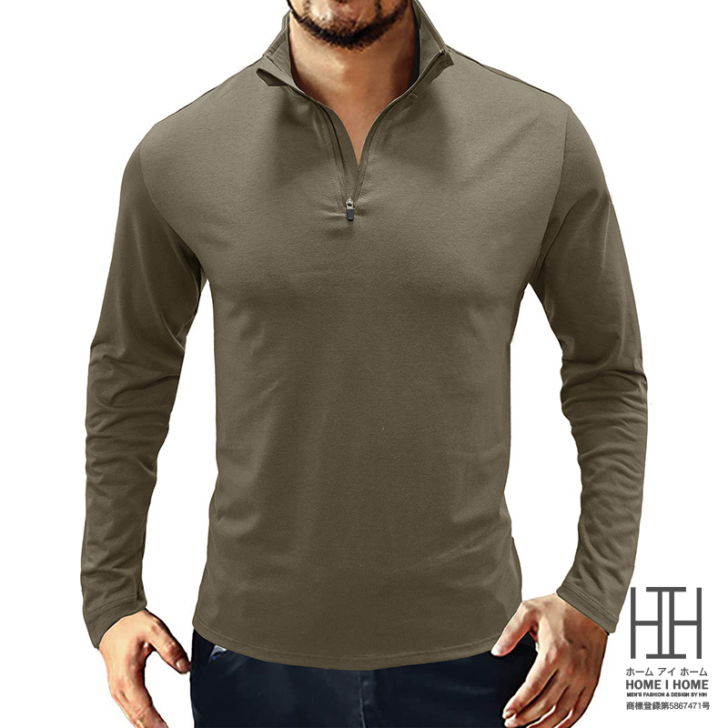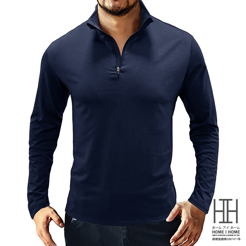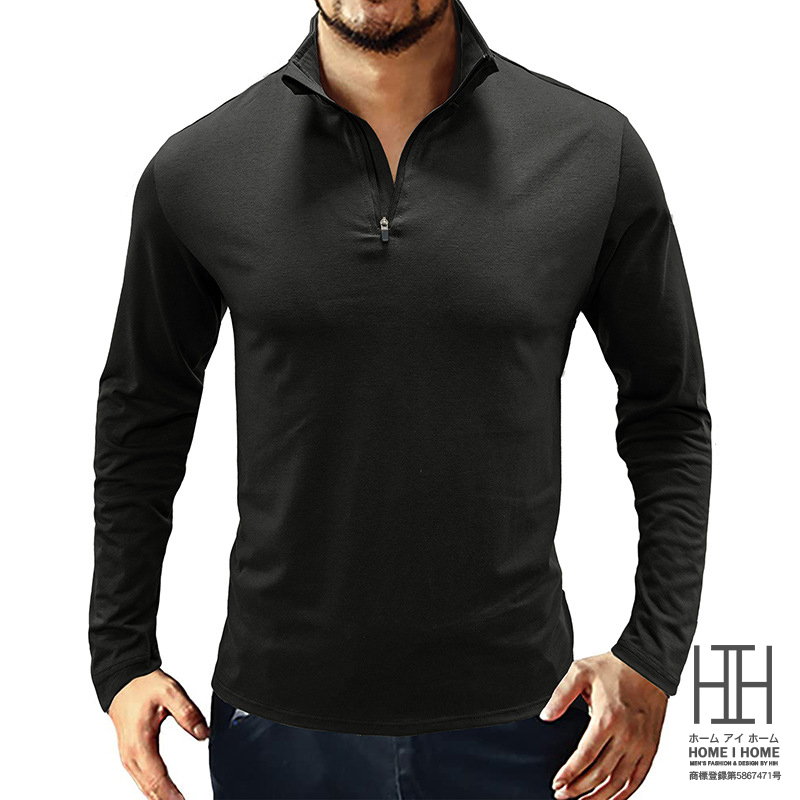 Tシャツ モックネック メンズ ロンT 長袖 紳士 ゴルフ ゴルフウェア ハーフジップ ストレッチ 欧米サイズ 無地 シンプル 春秋