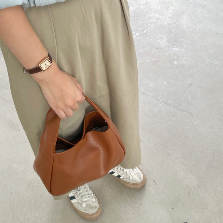 ハンドバッグとしてはもちろん、付属のショルダーベルトでワンショルダーバッグとしても、斜め掛けポシェットバッグとしてもお使いいただける便利な3WAY。