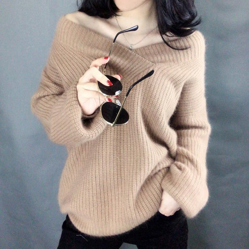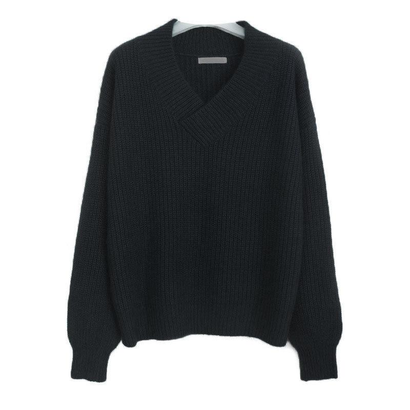 ゆったりVネックパフスリーブニットレディースアルパカニットボトムプルオーバーセーター ニット 春と秋冬の 純色