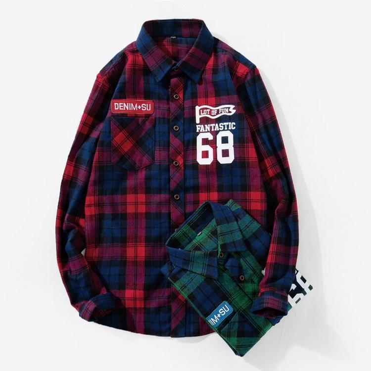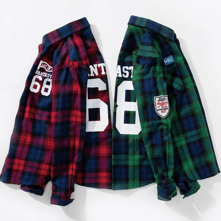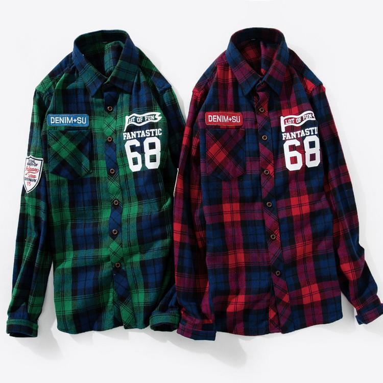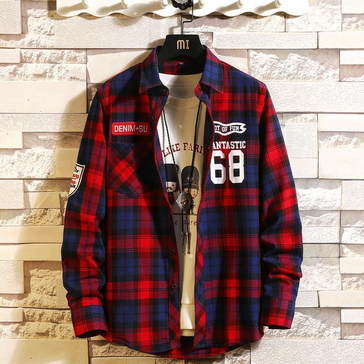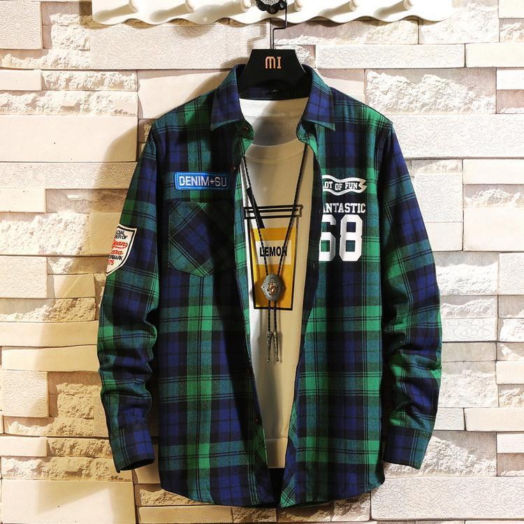チェックシャツ アメカジ ワッペン シャツ トップス カジュアルシャツ ネルシャツ 長袖 メンズ 春 秋