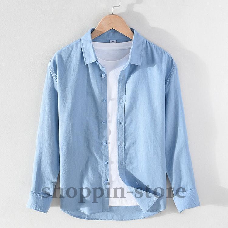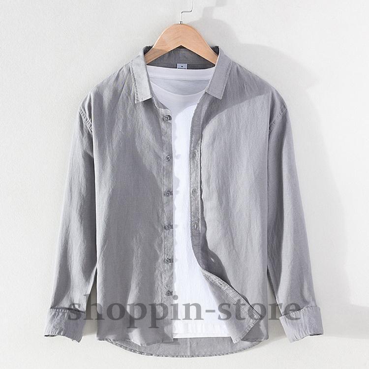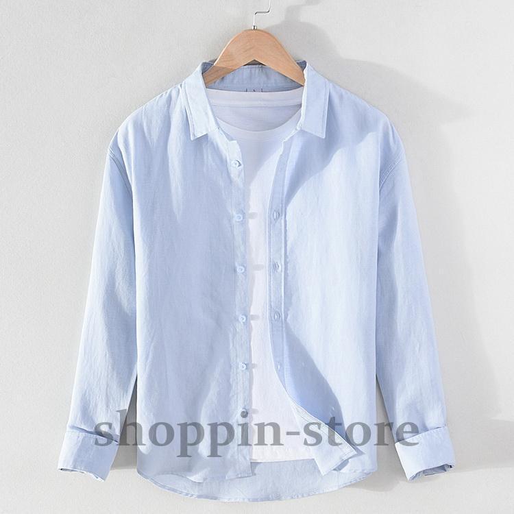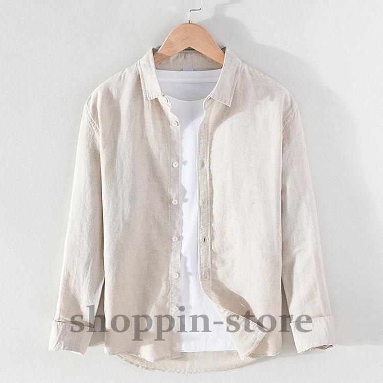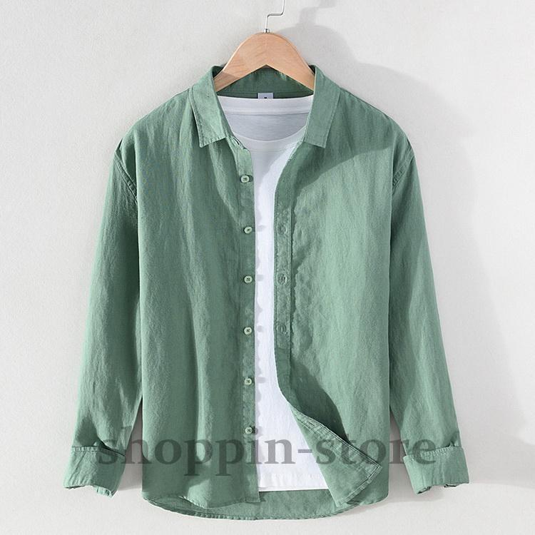 綿麻シャツ メンズ シャツ リネンコットン カジュアルシャツ トップス 通勤 春 爽快 春 長袖 清涼 夏