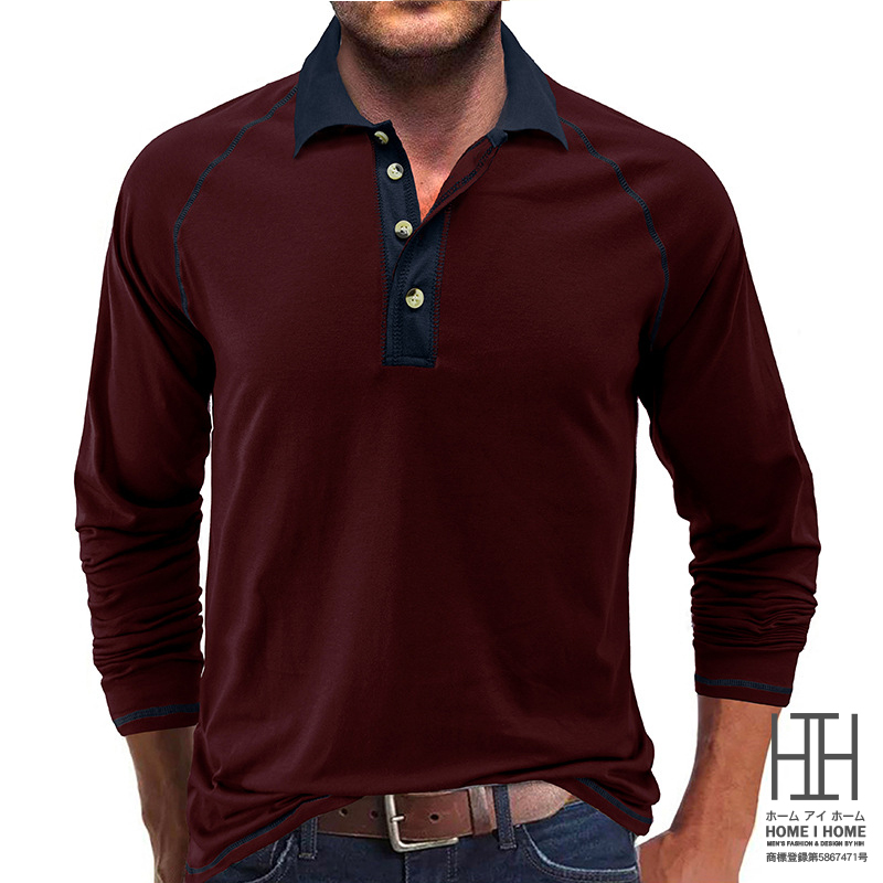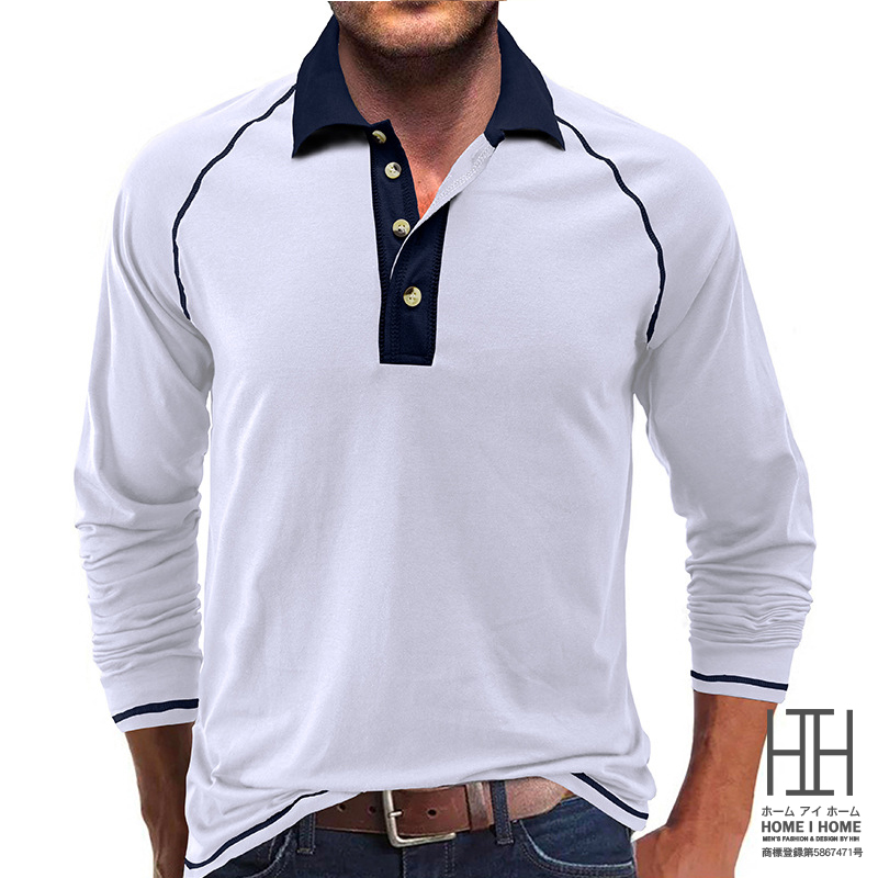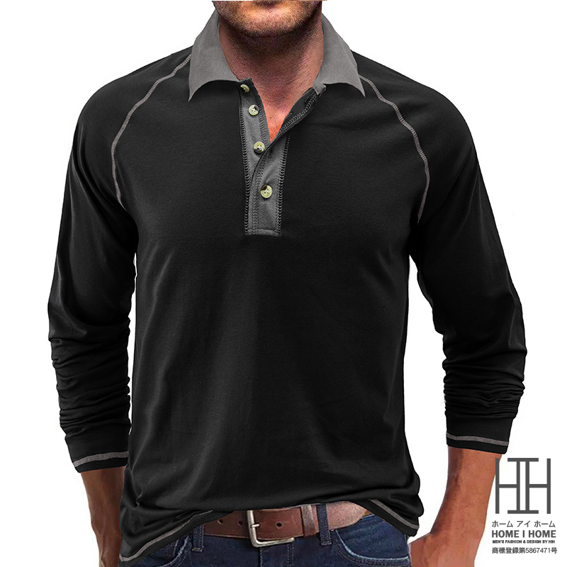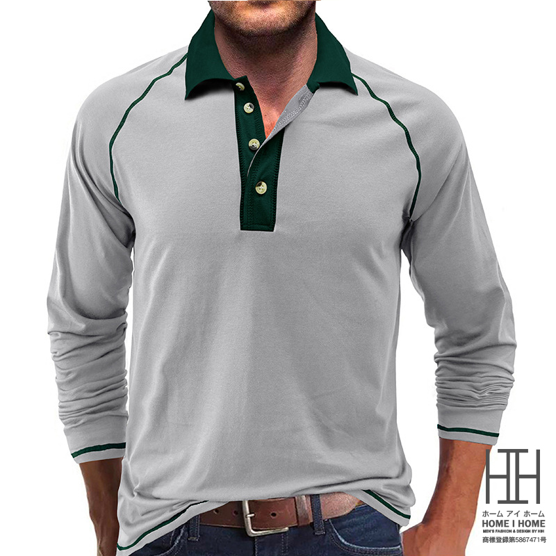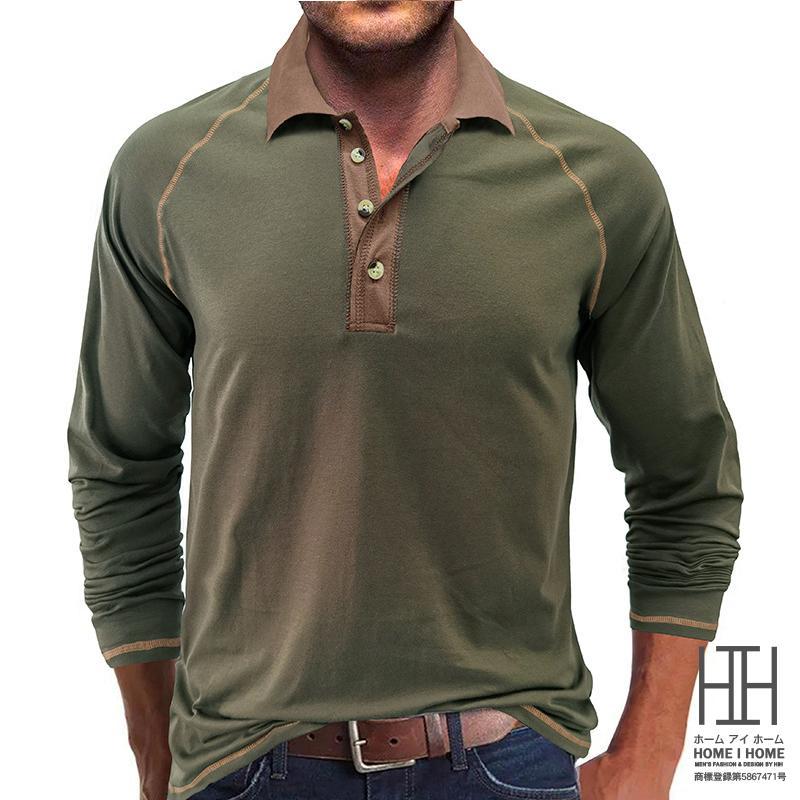 長袖ポロシャツ メンズ ラグランスリーブ ゆったり アメカジ トップス 春 秋 冬 おしゃれ ミリタリー 切り替えデザイン お兄系