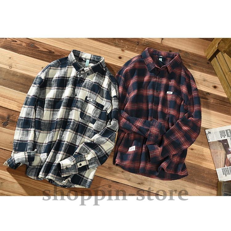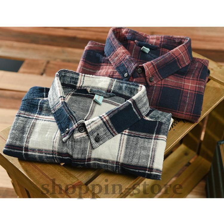 ネルシャツ メンズ カジュアルシャツ ボタンダウンシャツ チェック柄 トップス100%綿 起毛 春 長袖 秋