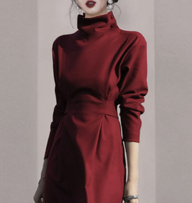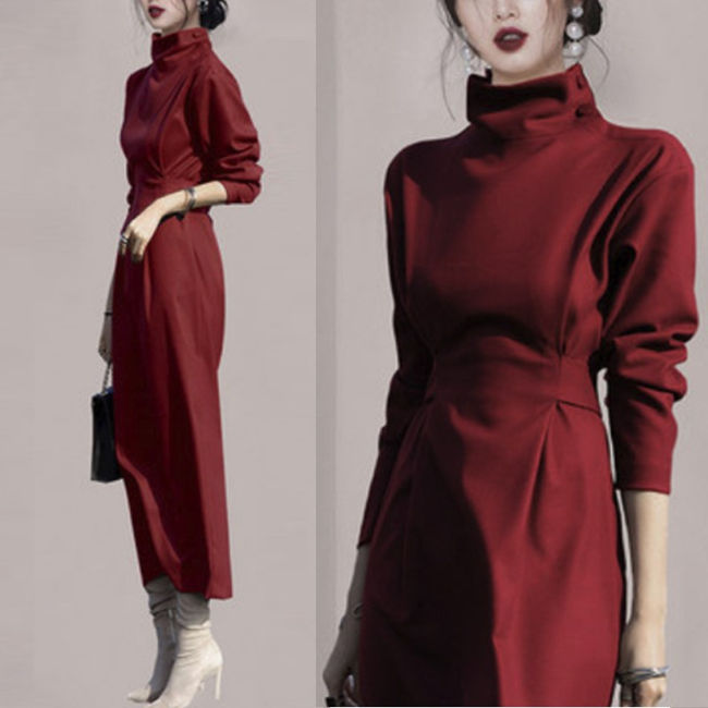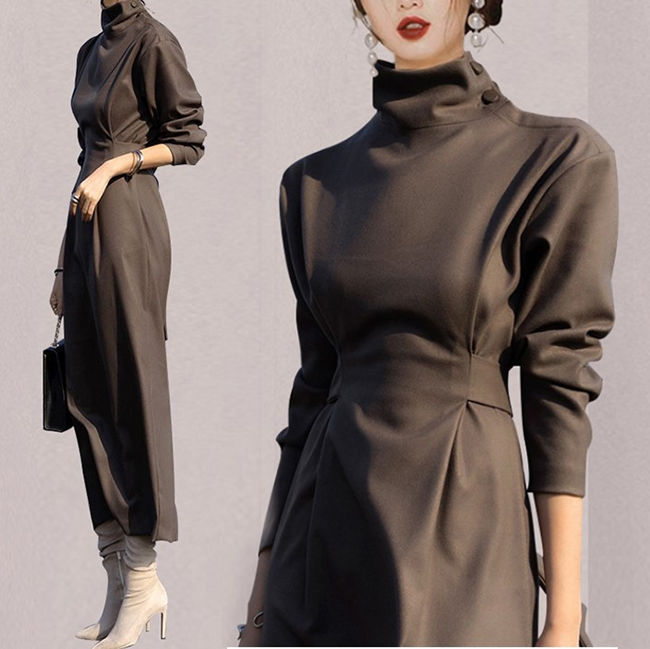 パーティードレス 結婚式 ドレス ワンピース 母親 親族 フォーマルドレス ブラック ブラウン ワイン レッド タートルネック 長袖 ロング モノトーン シック ウエディング ワンピ セクシー クール レトロ 成人式 花嫁 二次会 レディース ブライダル お嬢様 お呼ばれ 食事会
