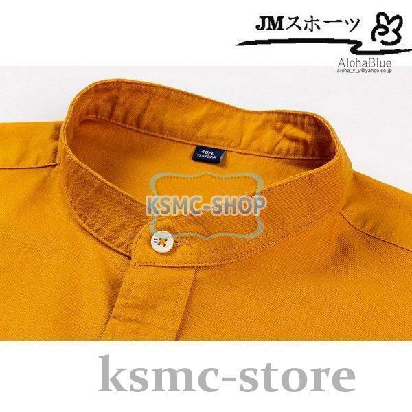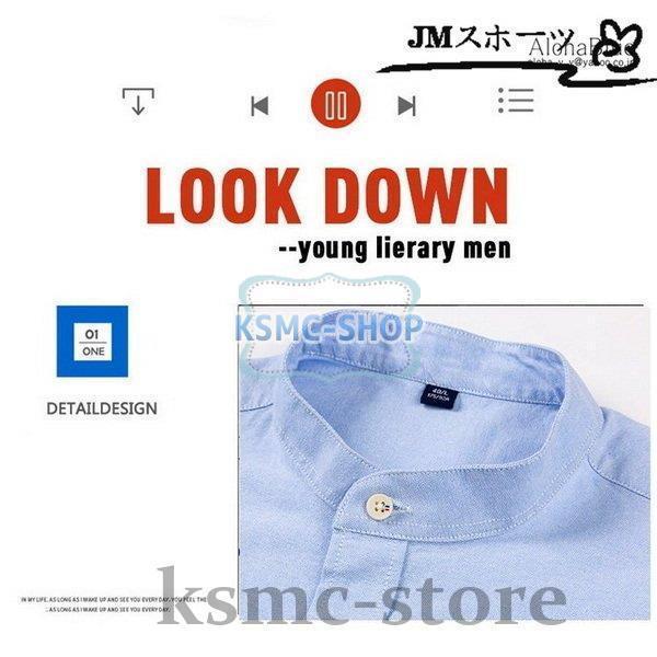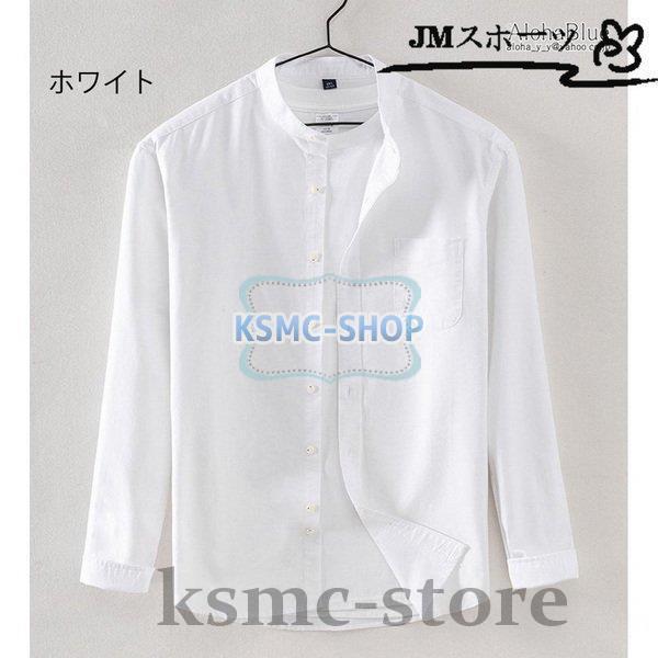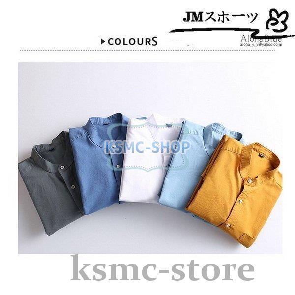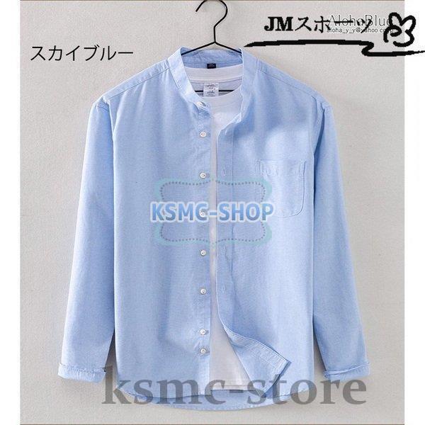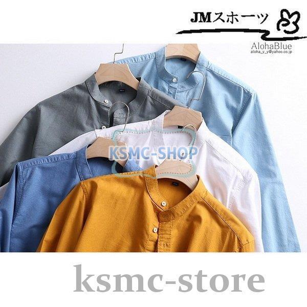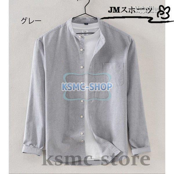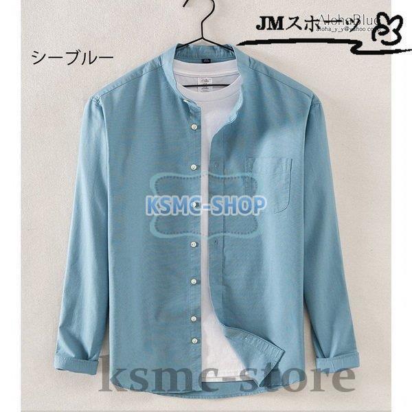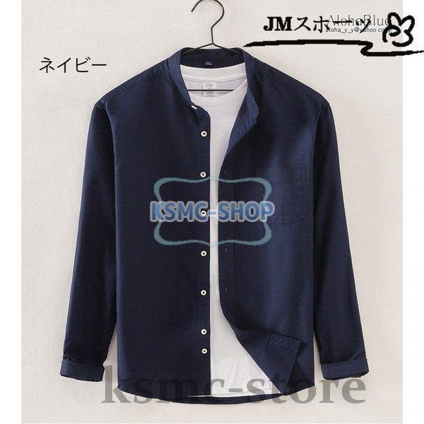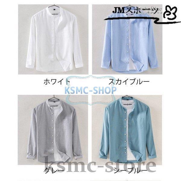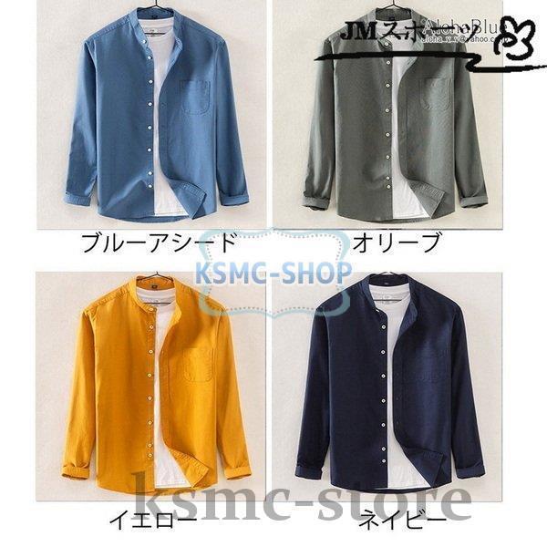 メンズ 長袖 シャツ カジュアルシャツ バンドカラーシャツ トップス 無地
