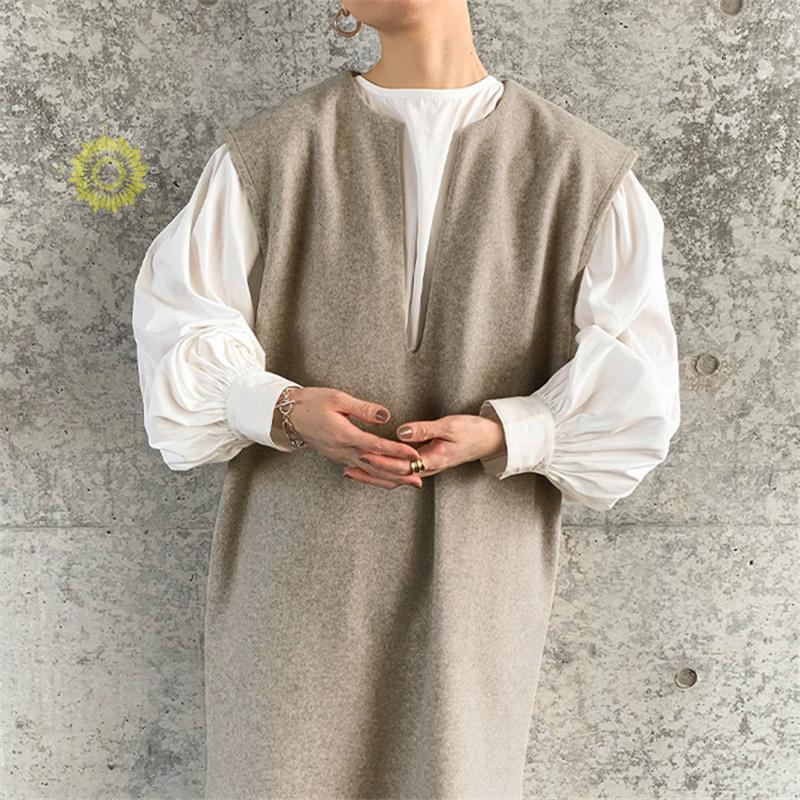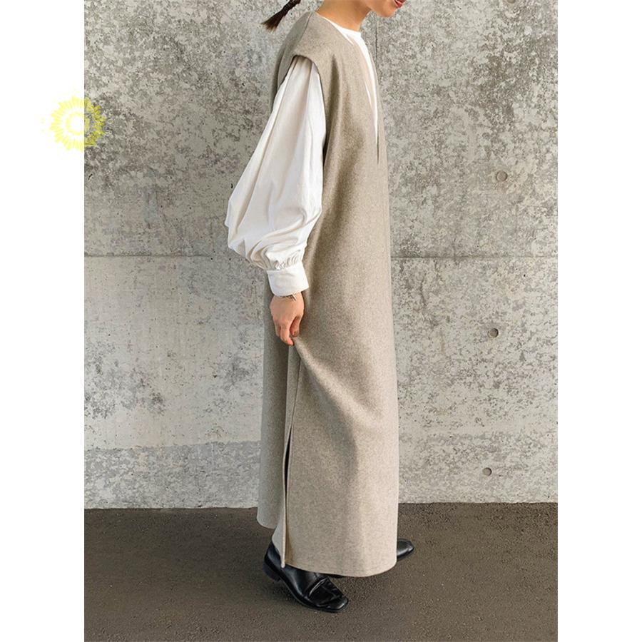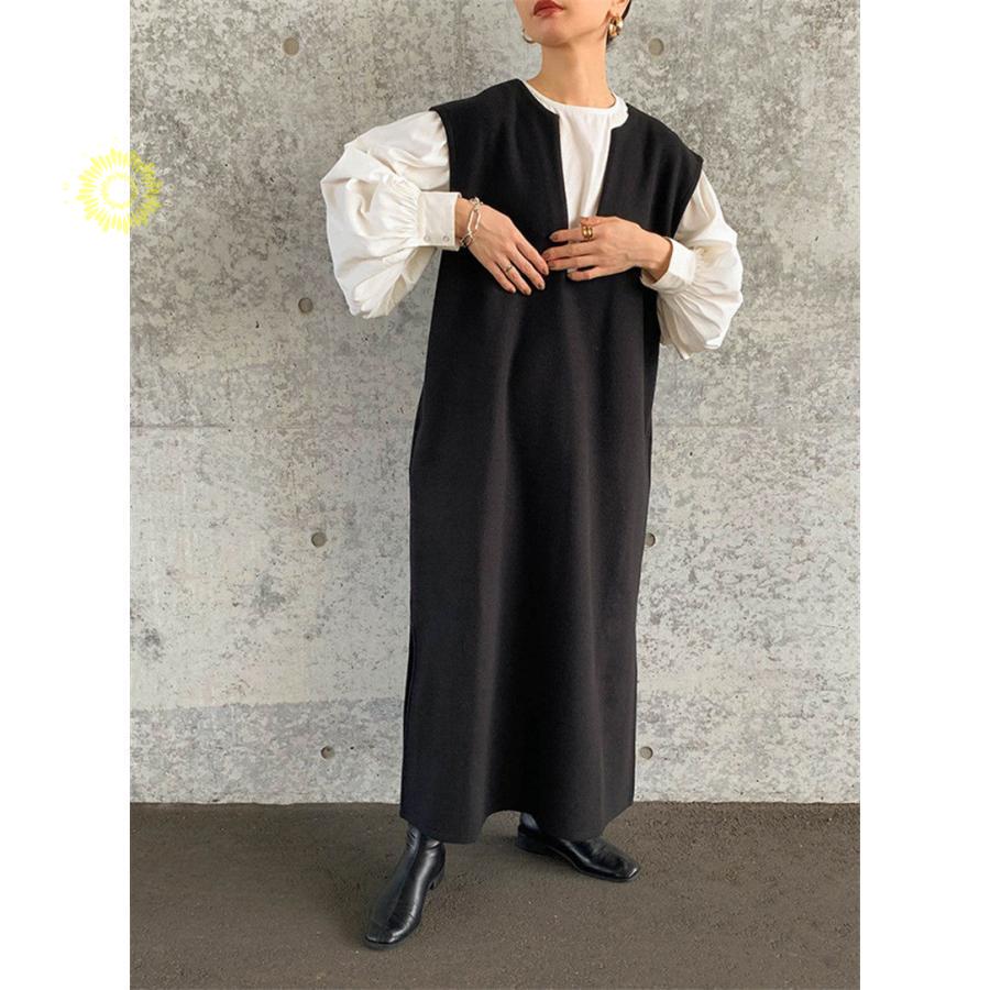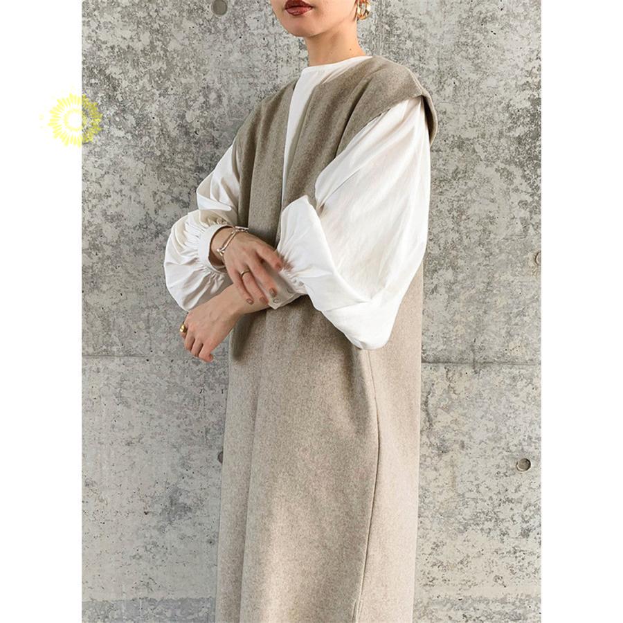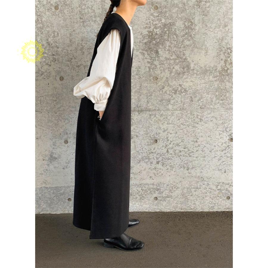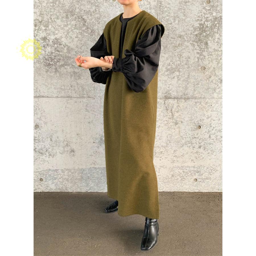 ★キーワード:Iライン ワンピース ジャンパースカート Vネック 大人 秋 冬 秋冬 レディース 大きいサイズ きれいめ おしゃれ オフィスカジュアル セットアップ ジャンスカ 膝丈