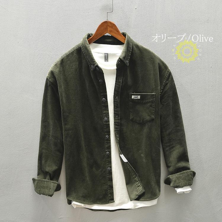 コーデュロイシャツ メンズ 秋冬 ボタンダウンシャツ カジュアルシャツ トップス 綿 長袖