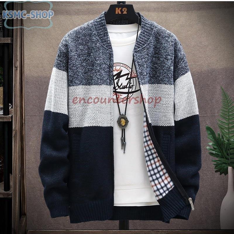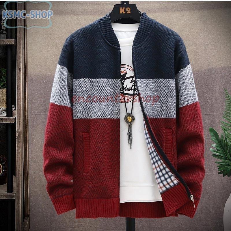 シンプルなデザインのジップアップニットセーターです。