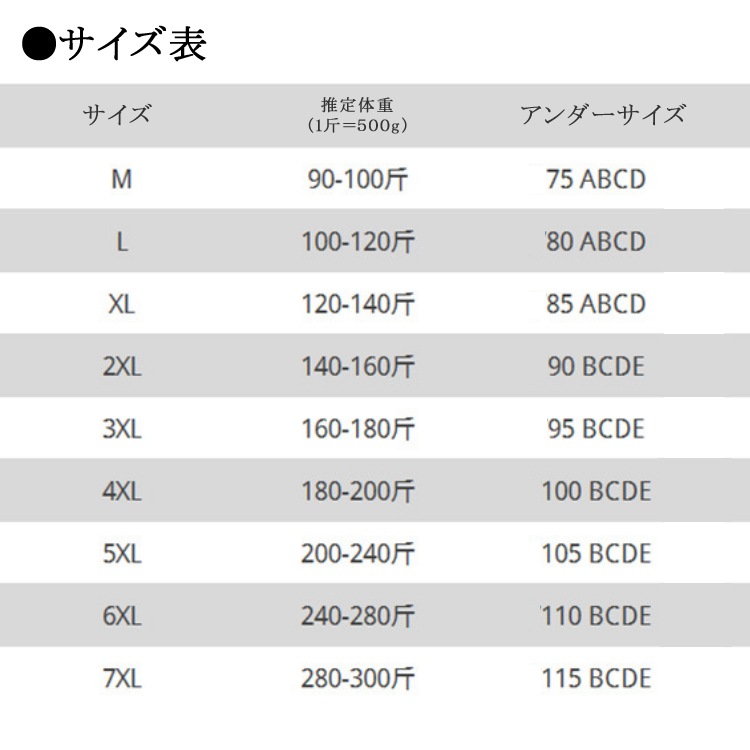 サイズ M L XL 2XL 3XL 4XL 5XL 6XL 7XL