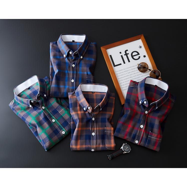 ボタンダウンシャツ ネルシャツ チェック柄 シャツ トップス カジュアルシャツ メンズ 秋 春 長袖