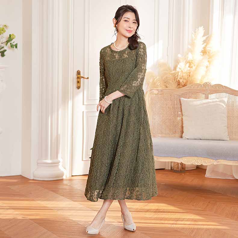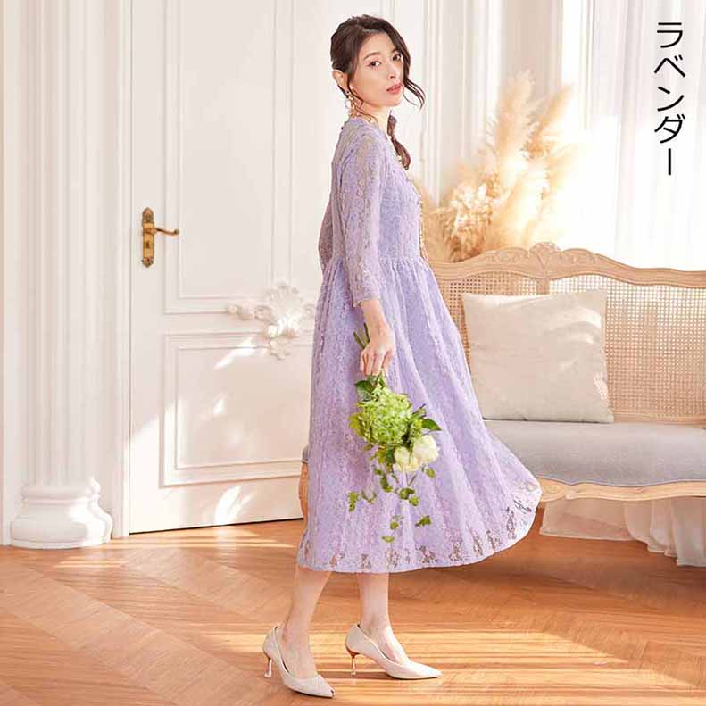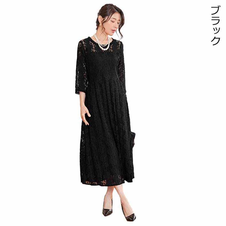 パーティードレス ロングワンピース総レース長袖ロング丈結婚式披露宴 二次会お呼ばれ黒ブラック ネイビーグリーン20代 30代 40代レディースフォーマル春夏秋冬