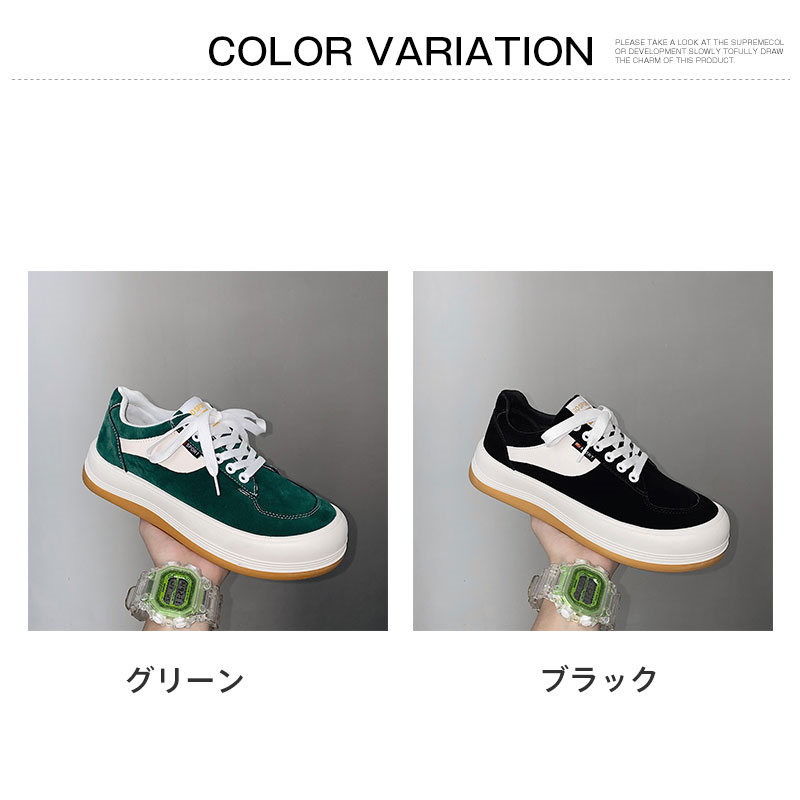 キーワード スニーカー メンズ レディース ローカット 厚底スニーカー カジュアルシューズ 定番カラー ブラック グリーン おしゃれ 韓国 ファッション 秋 春 秋新作