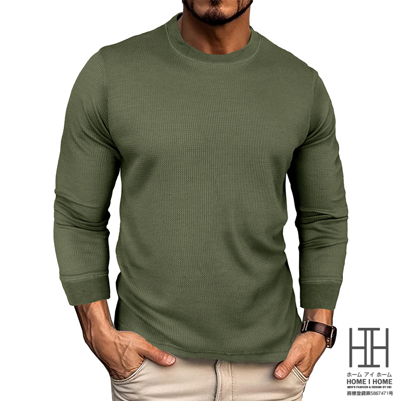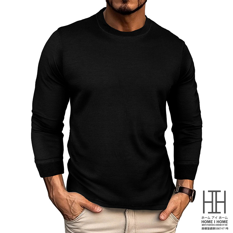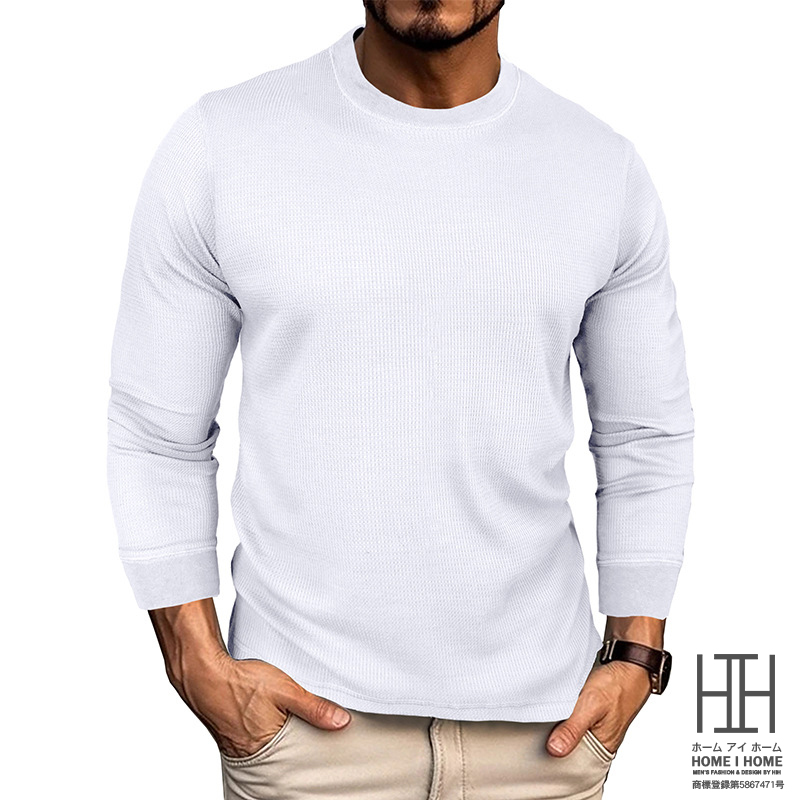 Tシャツ ロンT Tシャツ メンズ ワッフル生地 長袖 クルーネック カジュアル ストレッチ 柔らかい アメカジ ゆったり 秋冬 インナー トップス