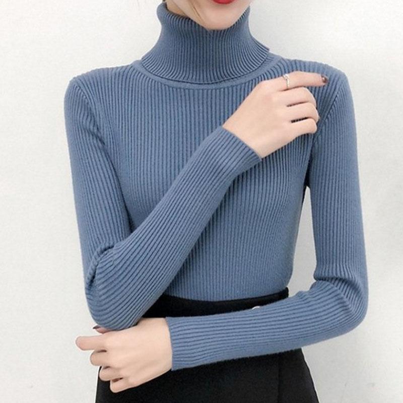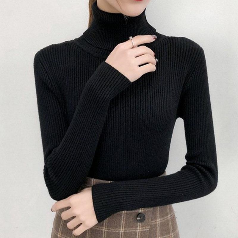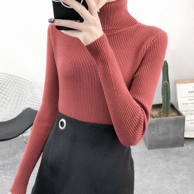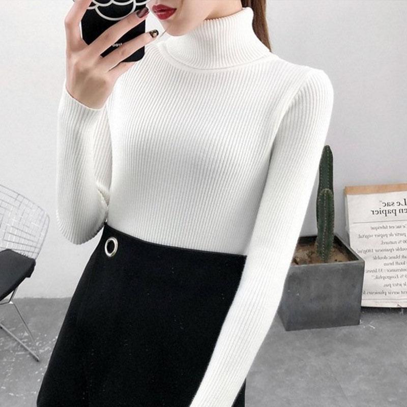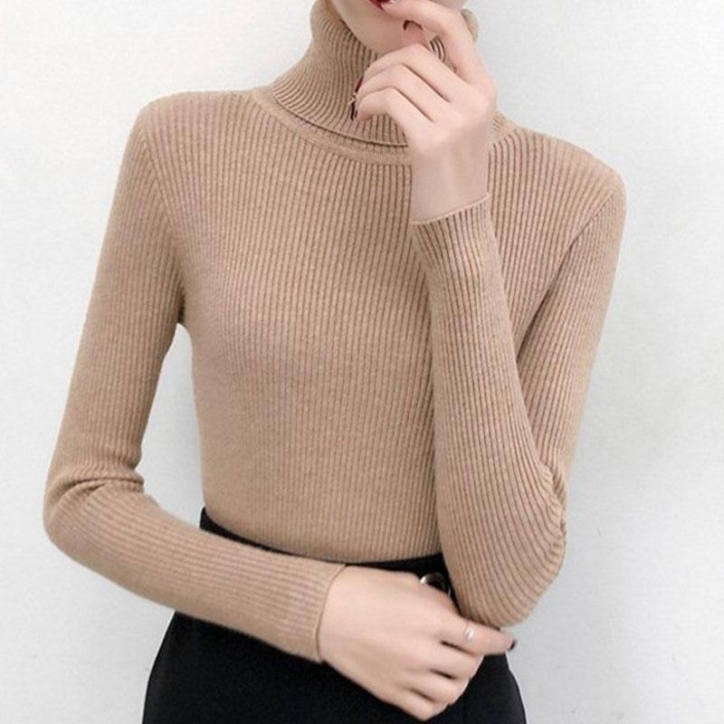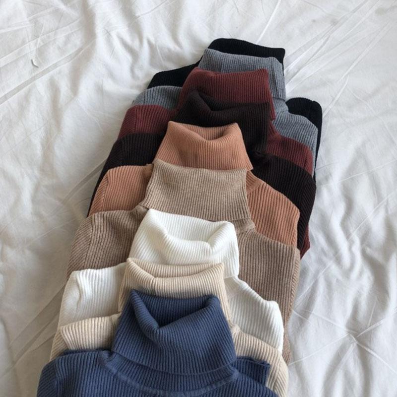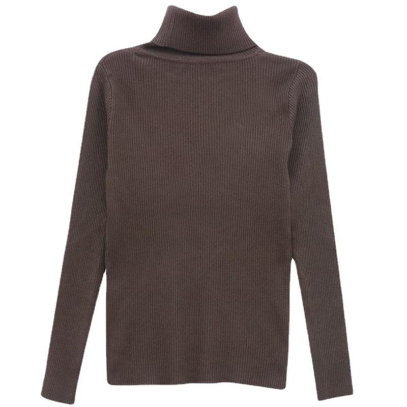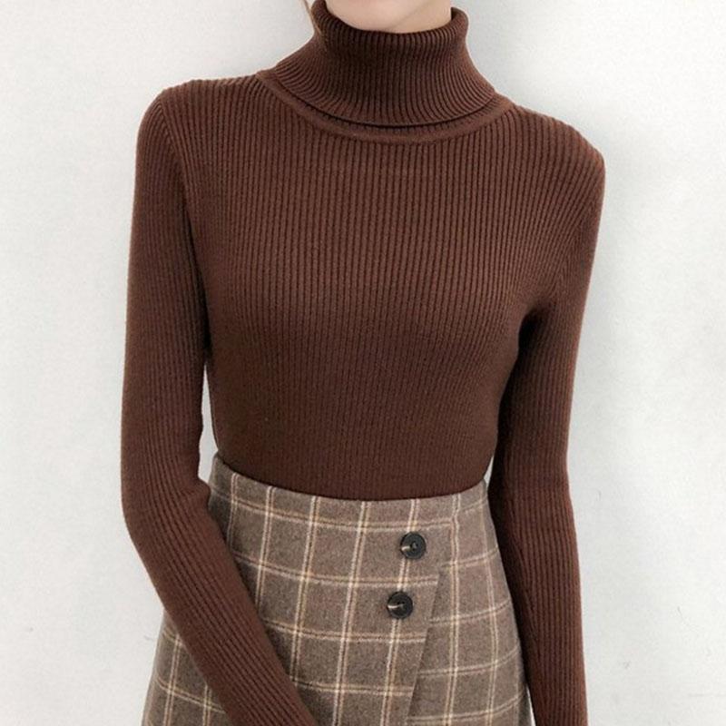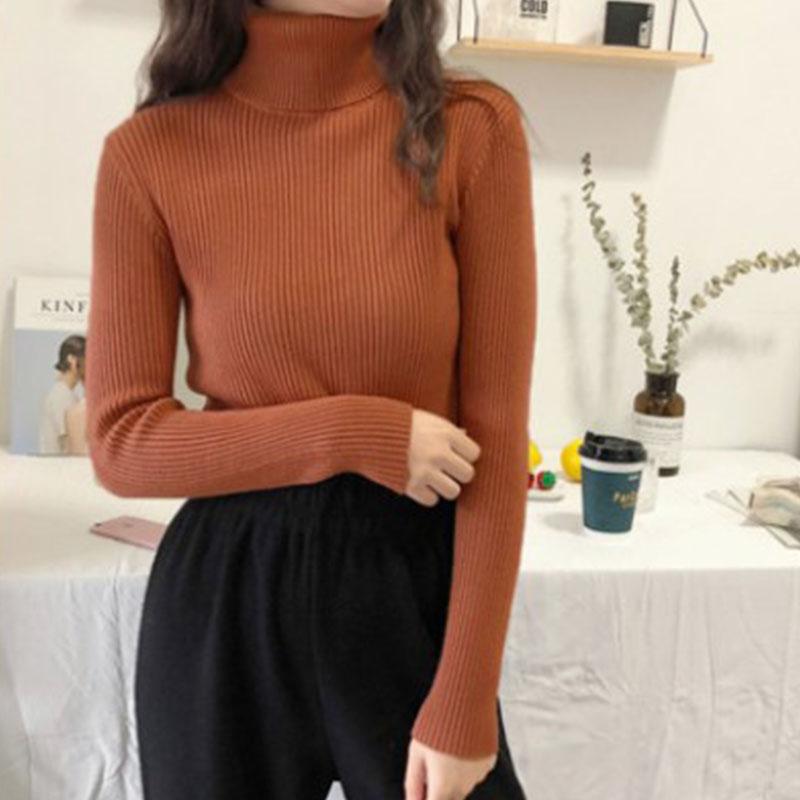 着回しのきくリブプチハイネック プチタートルネックニットセーター。