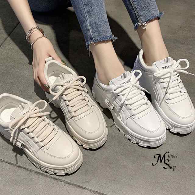 裏起毛あり なし スニーカー レディース シューズ 厚底 韓国 ダッドスニーカー 秋冬 白 靴