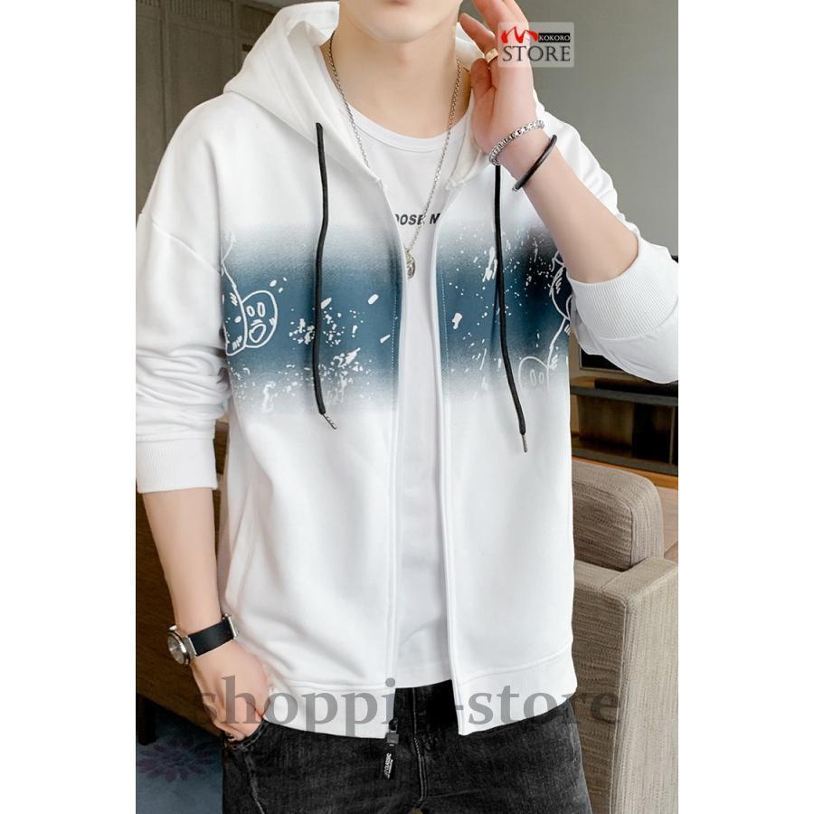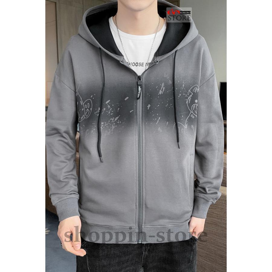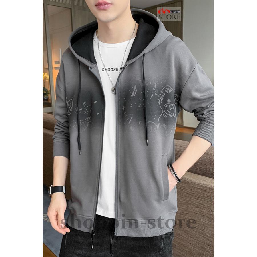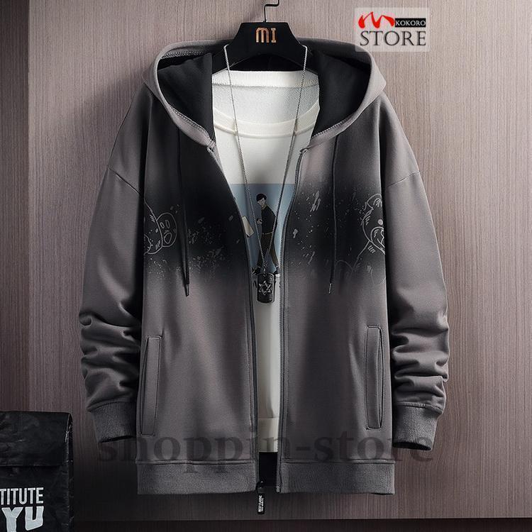 パーカー メンズ ジップアップパーカー トップス 春服 春物 きれいめ グラデーション 長袖 2023 春秋 新作