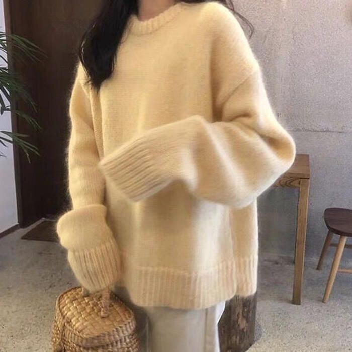 トップス ニット セーター クルーネック レディース きれいめ ゆったり 長袖 可愛い おしゃれ 体型カバー ベーシック カジュアル 大人 シンプル フェミニン 韓