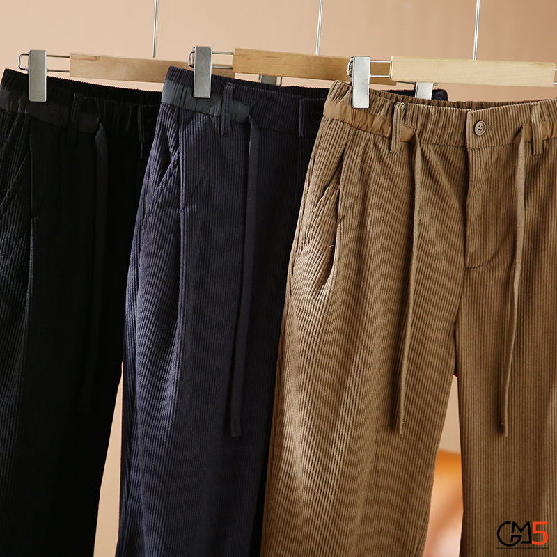 コーデュロイパンツ メンズ ルーズ テーパード パンツ ワイド ルーズ イージー ボトムス 秋パンツ 無地 ロングパンツ ウエスト締め