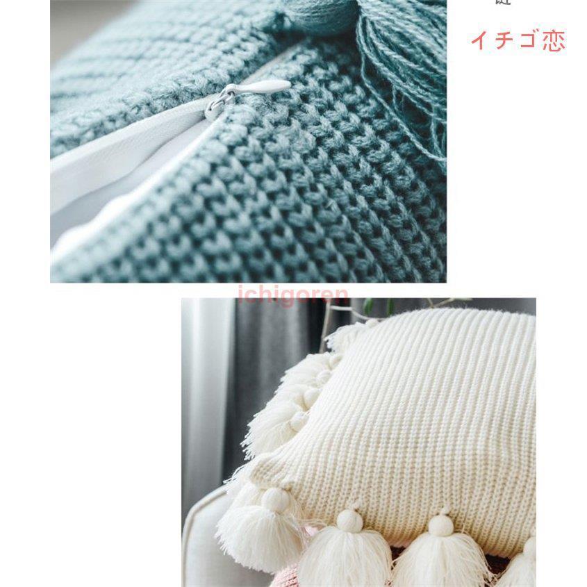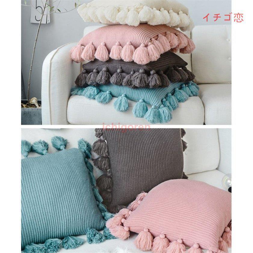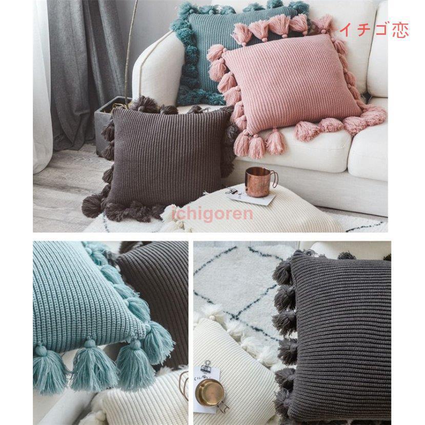 クッションカバー 北欧 フリンジ付き 45X45CM 可愛い ソファ背当て 座布団カバー ニット タッセル 装飾枕カバー ファッション 高級感 編み