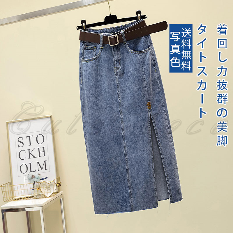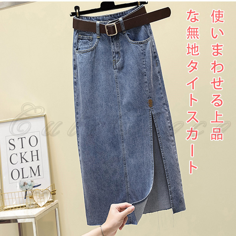 デニムスカート レディース Aライン ウエスト ポケット付き 着痩せ見え 動きやすい