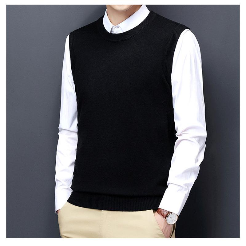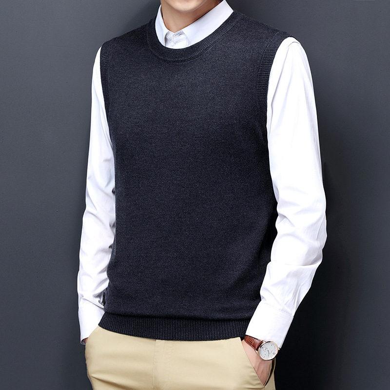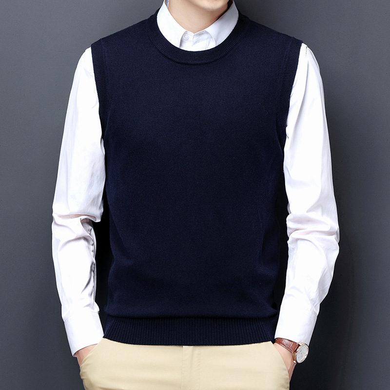 無地でシンプルなデザインなので、着回し性抜群・スーツに合わせやすいスタンダードなベストです。