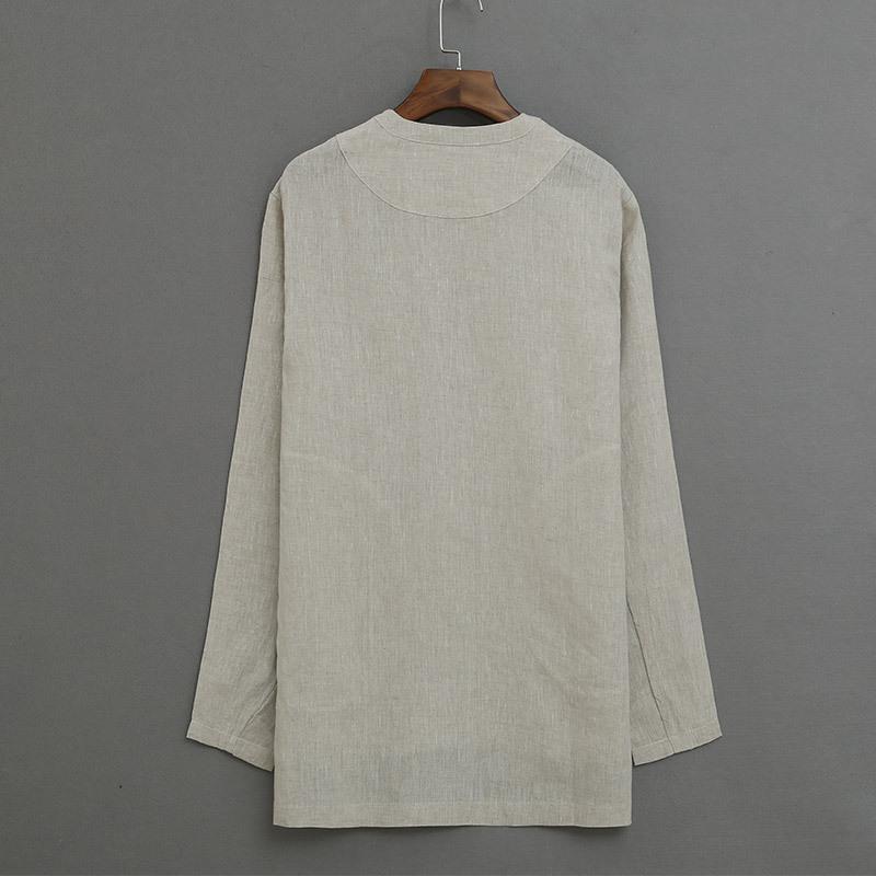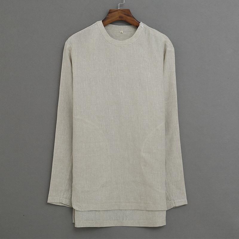 ナショナルスタイルリネンメンズ長袖Tシャツの男性と同じ段落の女性リネンシャツファッショントレンドラウンドネックルーズトップス