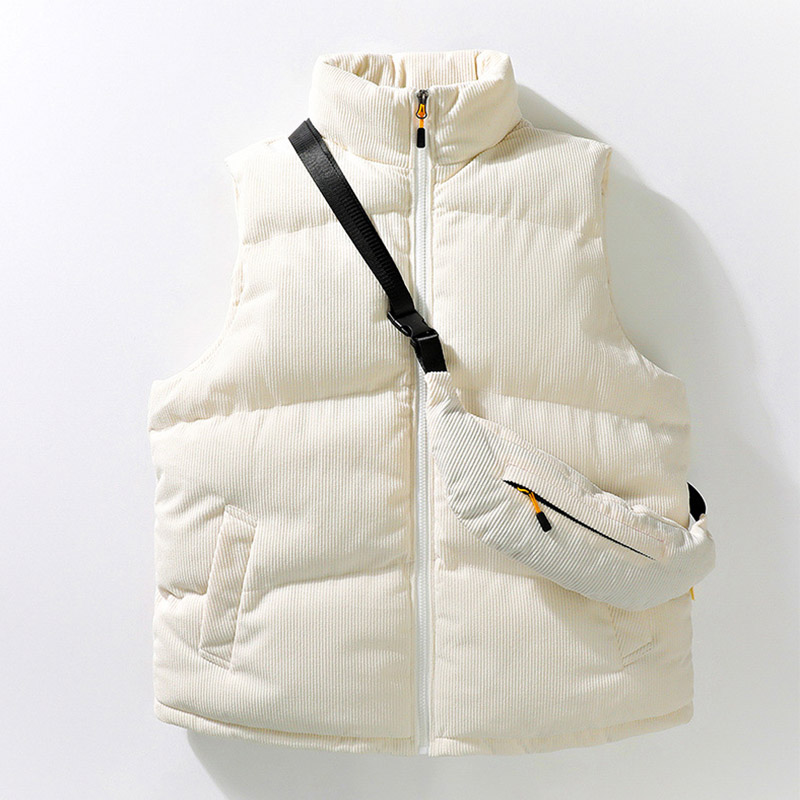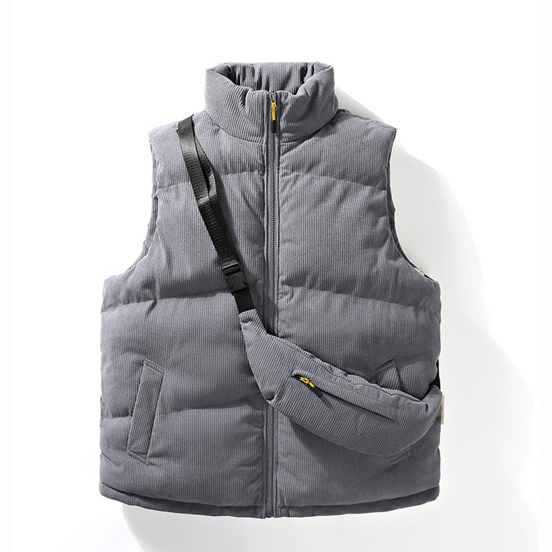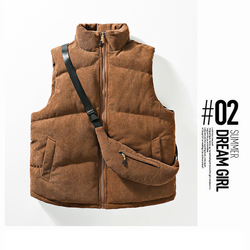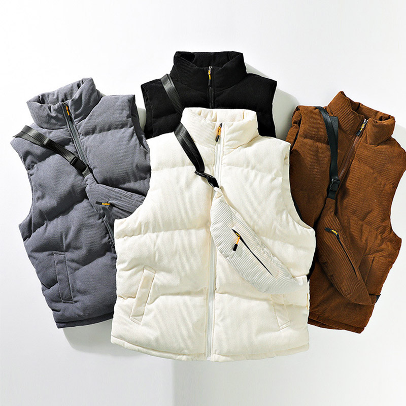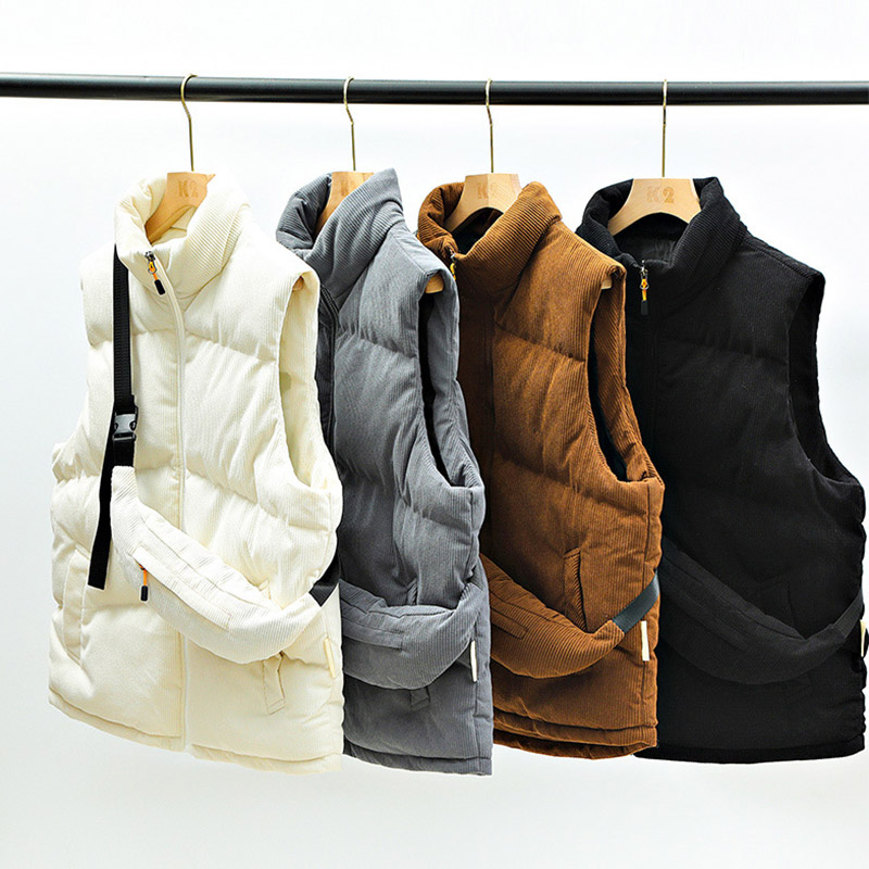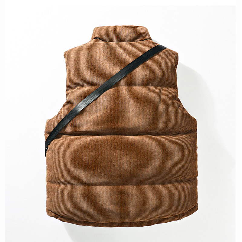 コーデュロイベスト メンズ ダウンベスト 中綿ベストトップス ジャケット コート ジップアップ アウター 軽めベスト 暖かい 防寒 軽量キルティング トップス