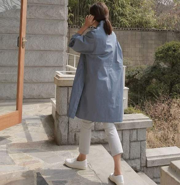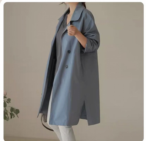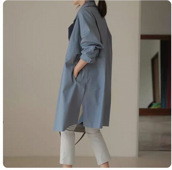 ステンコート トレンチコート 長袖 サックス 通勤通学 送料無料女子会20代30代40代50代60代 お出かけ ハーフコート