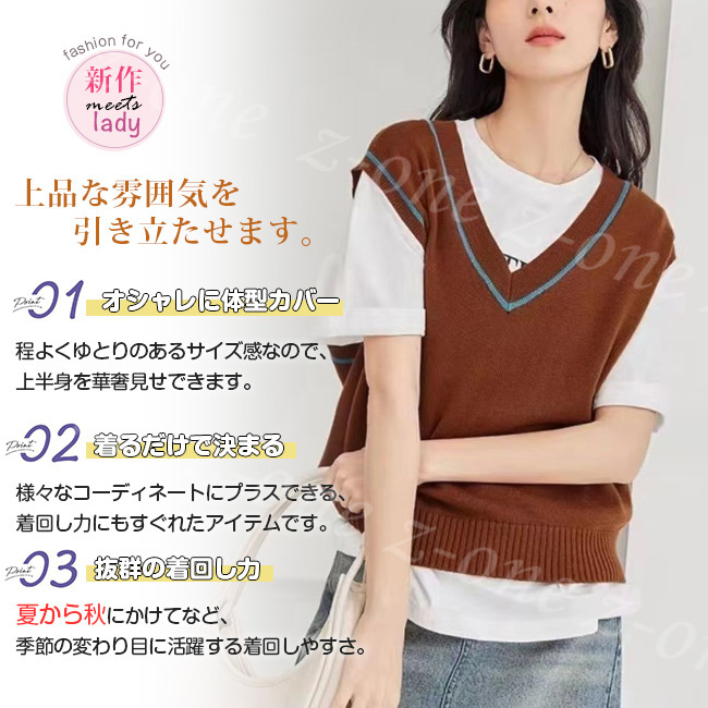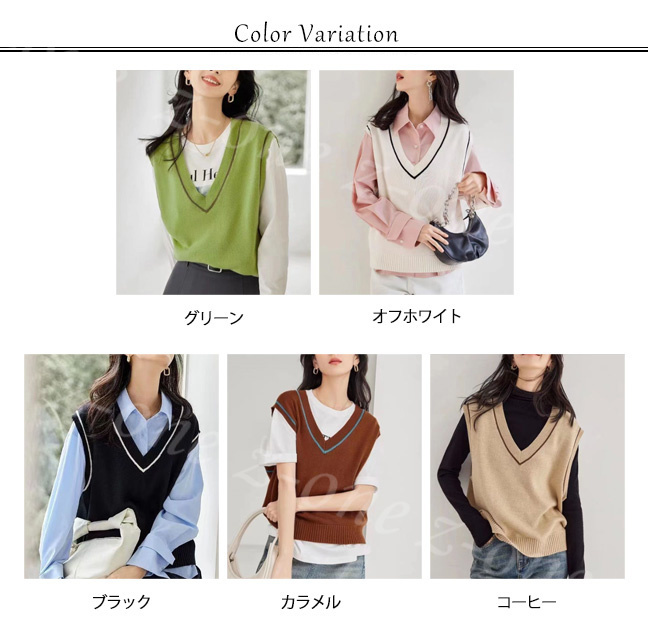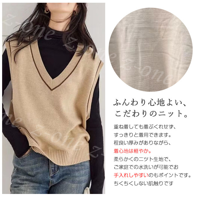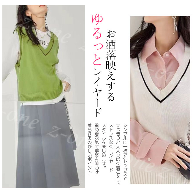 ベスト ニット プルオーバー レディース 新作 Vネック 通学 セーター 体型カバー 柔らかい 保温 レイヤード 秋冬 大人 通勤 春 学生 アウター ゆったり 可愛い