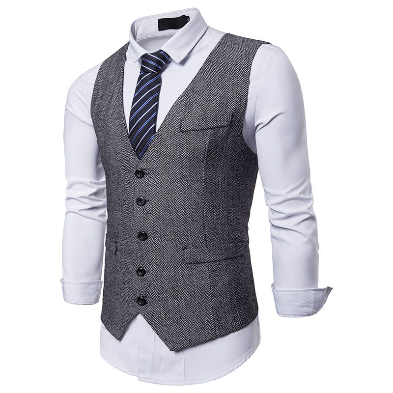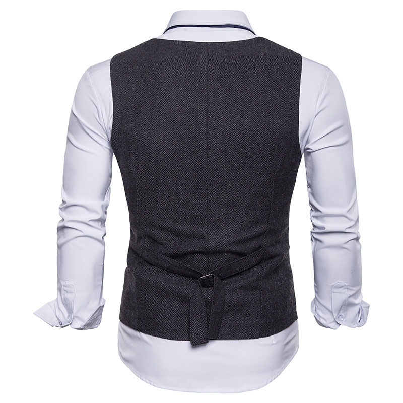 お手持ちのスーツやジャケットに合わせやすい、ドレスシャツや、カットソーでのベストスタイルも上品にきまります。
