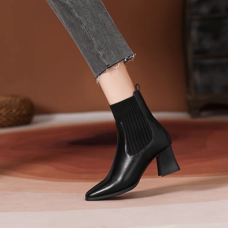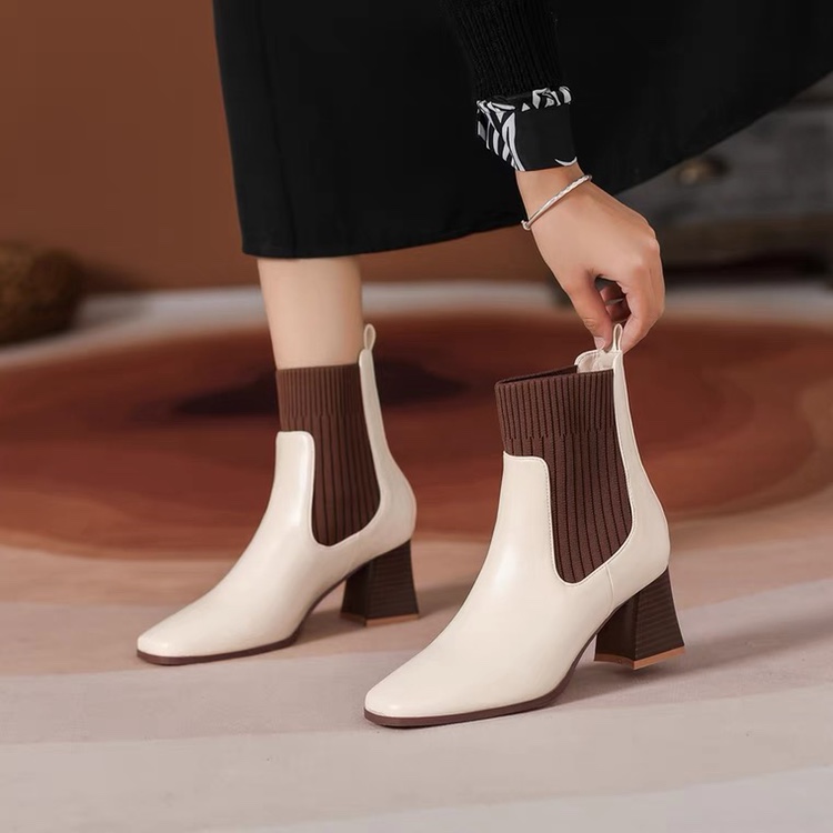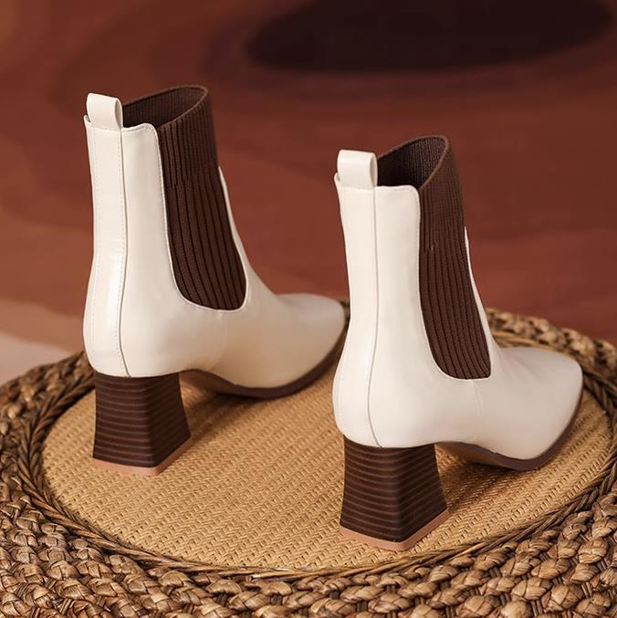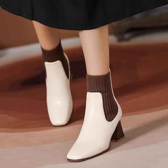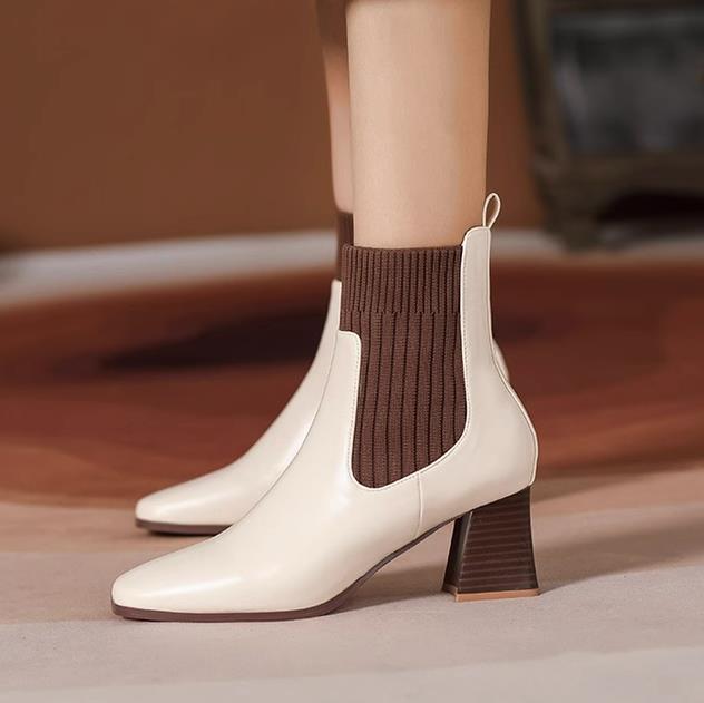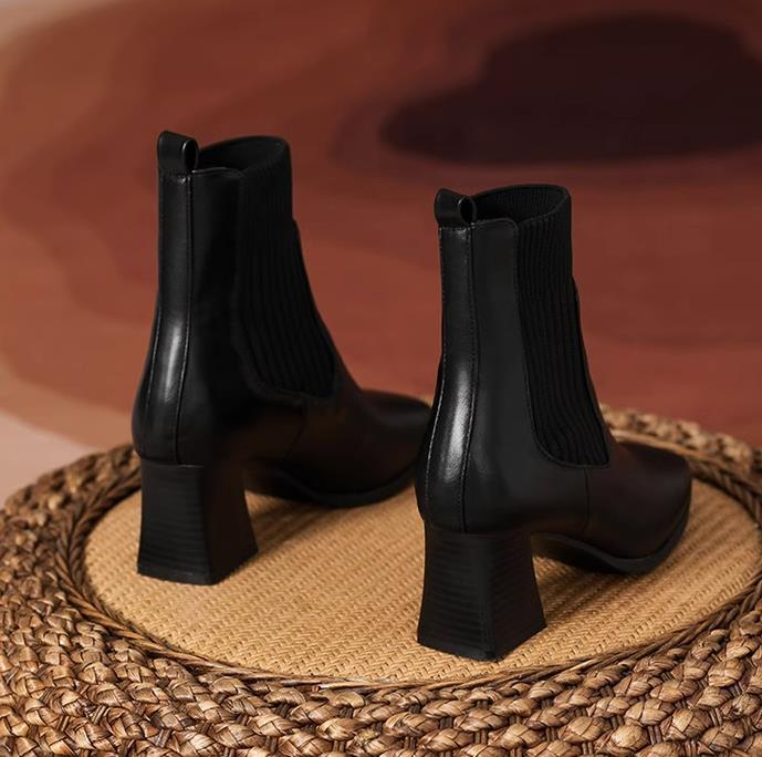 ブーツ レディース ブーティー ショートブーツ 太めヒール サイドゴアブーツ スクエアートゥ革靴 女子靴 ハイヒール 太めヒール オシャレ
