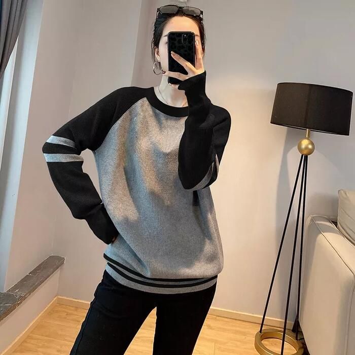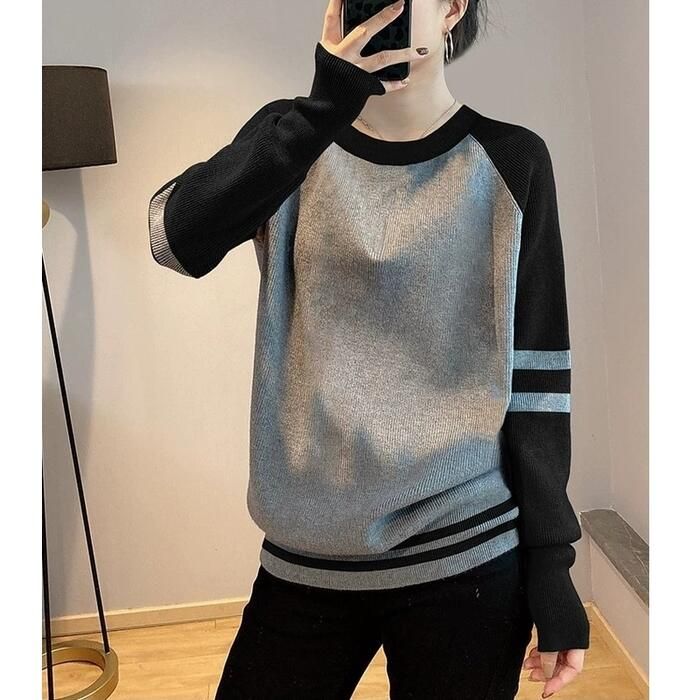 トップス ニット セーター ラグラン クルーネック レディース フェミニン 可愛い 切り替え 大人 かっこ 長袖 バイおしゃれ カジュアル きれいめ ライン