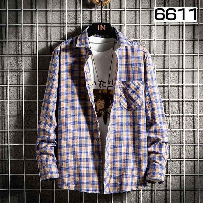 チェックシャツ メンズ カジュアルシャツ シャツ 長袖 チェック柄 開襟シャツ トップス カジュアル おしゃれ コーデ シンプル 春 秋服
