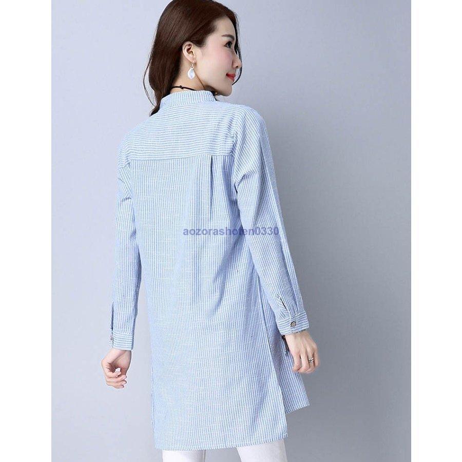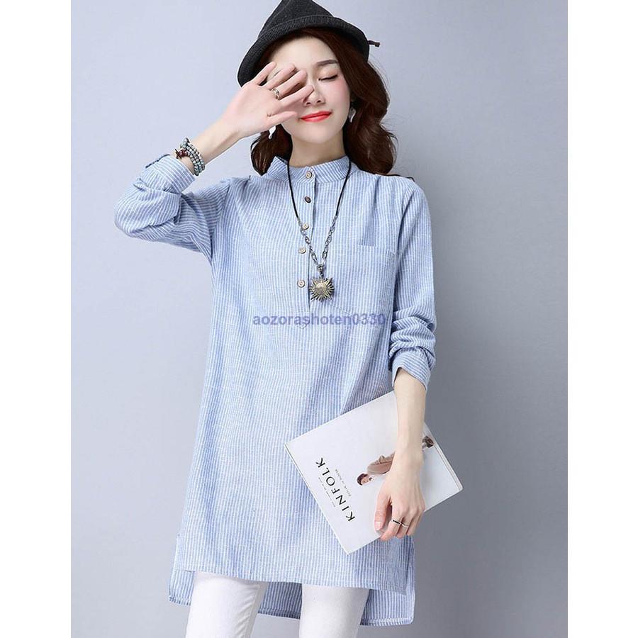 ワンピ ワンピース シャツワンピ ゆったりワンピース ストライプ柄 スタンド ボタン 5つボタン コットンリネン 紫外線対策 ゆったり レディス レディース 春夏 新作
