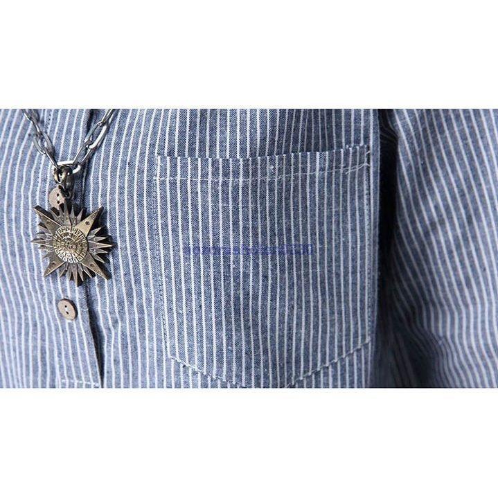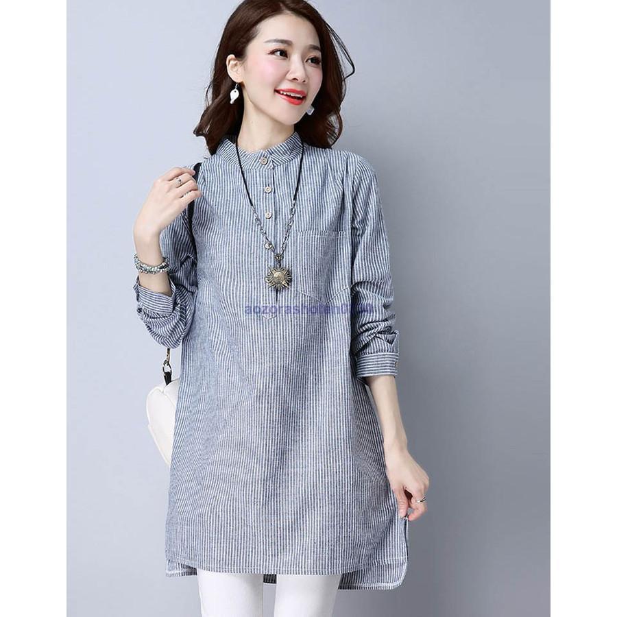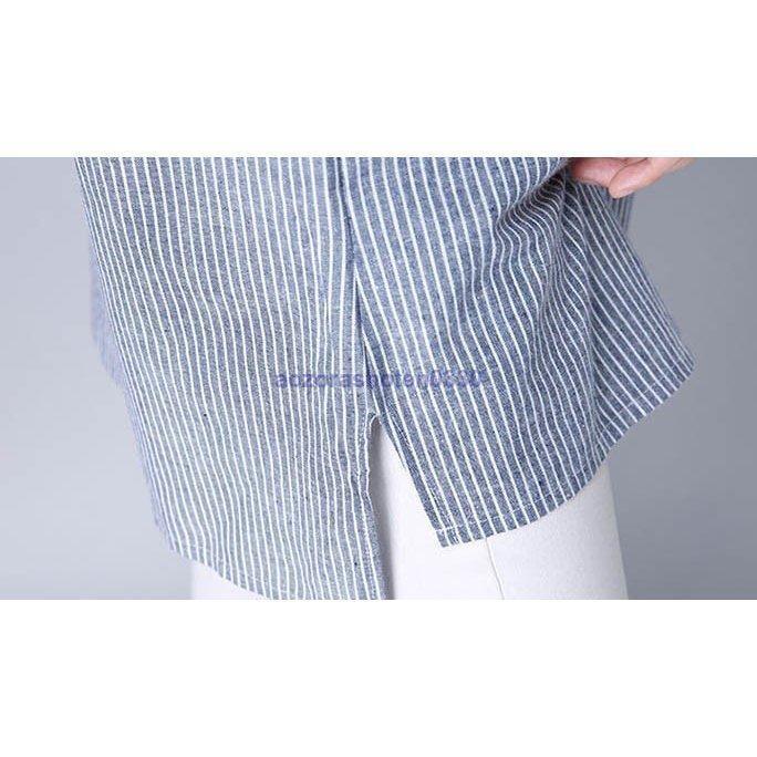 チュニック シャツ ワンピース シャツワンピース ストライプ柄 麻綿混紡 フロントボタン マリン風 薄手 涼しげ
