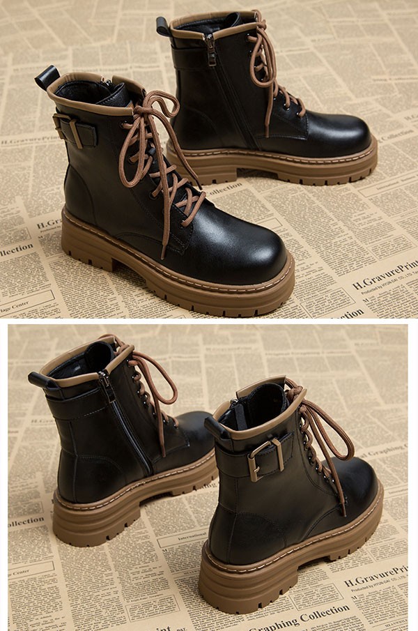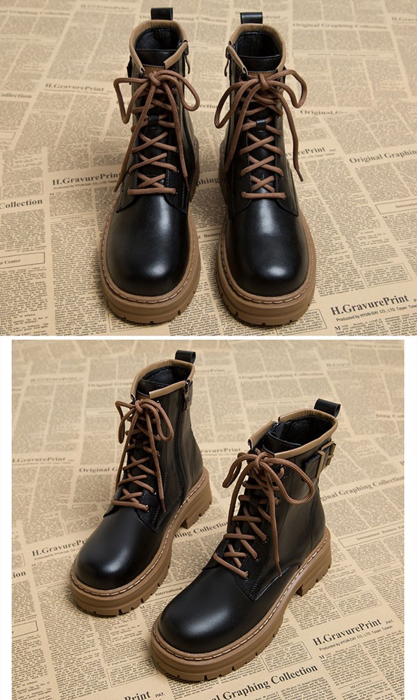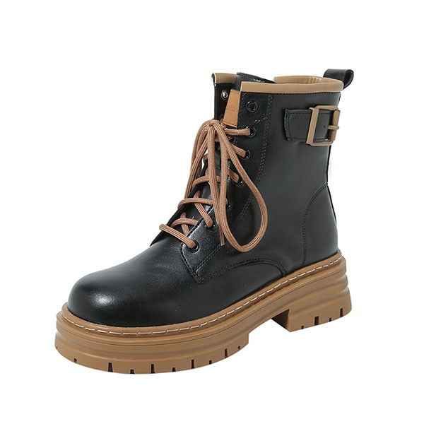 ショートブーツ レディース 歩きやすい レースアップブーツ 編み上げブーツ サイドジップ ミドルブーツ ラウンドトゥ 履きやすい 防寒 エンジニアブーツ ワークブーツ レースアップ 厚底ブーツ 黒S1ZB
