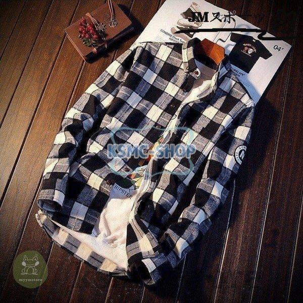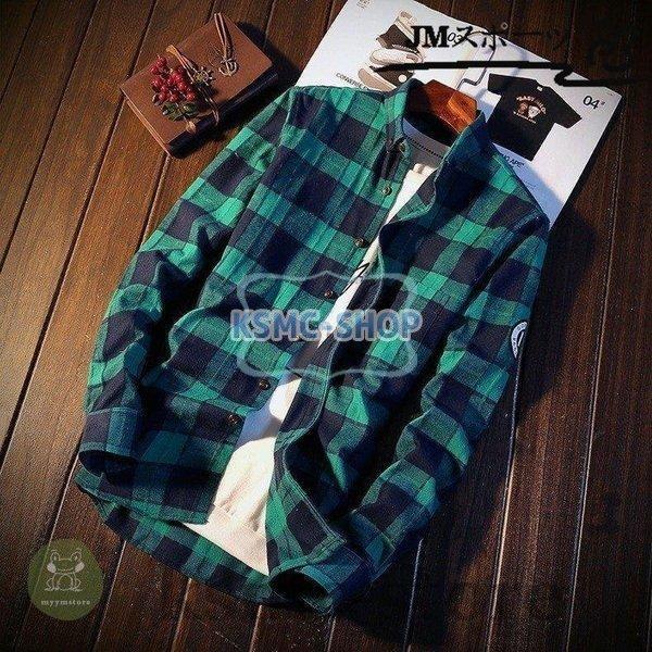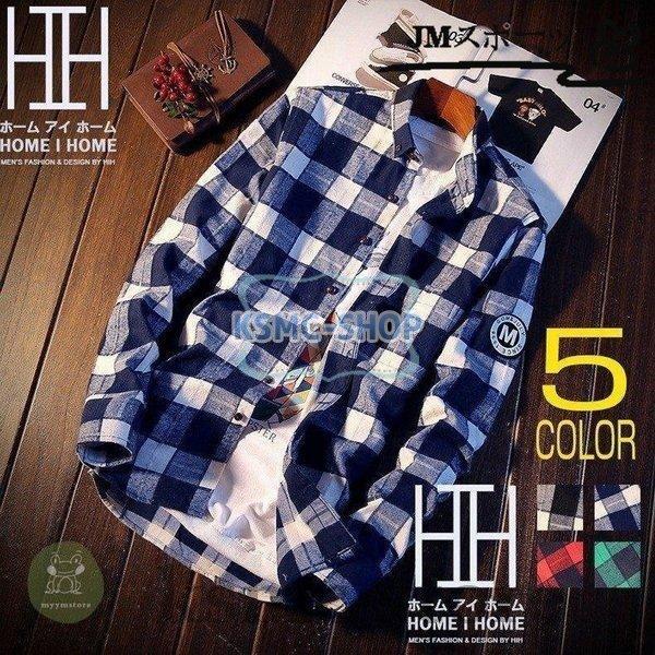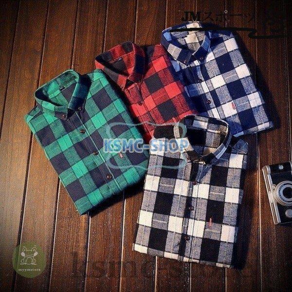 ボタンダウンシャツ メンズ 長袖 チェック柄 サイズ配色 カジュアル スリム 新作