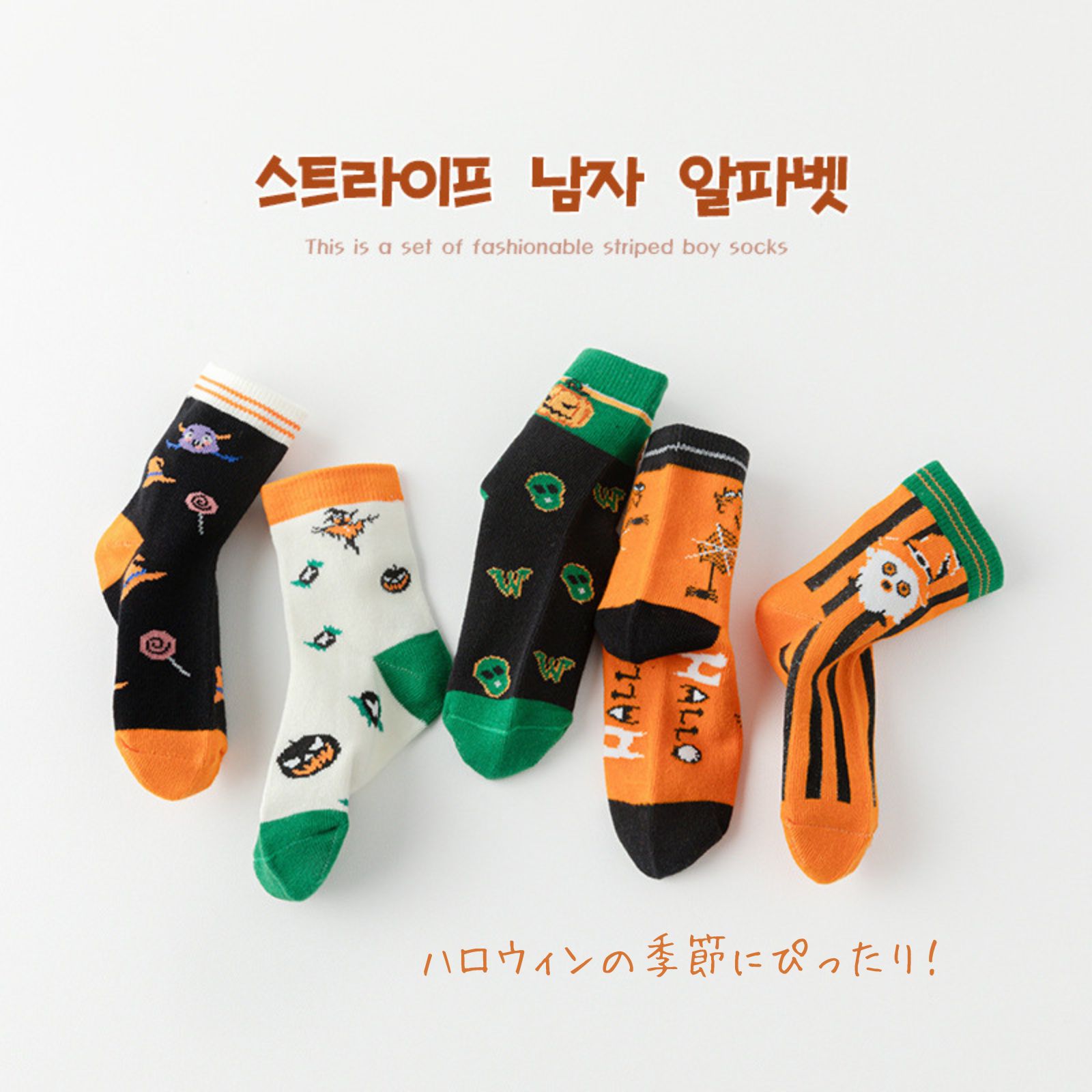 ハロウィン 靴下 プレ キッズ 女の子 男の子 ソックス 丈 こども 5足セット 韓国 子供用 目立つ ソックス くつした(HS01) カラフル