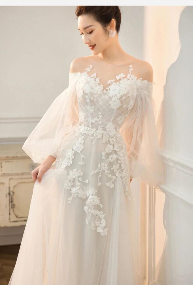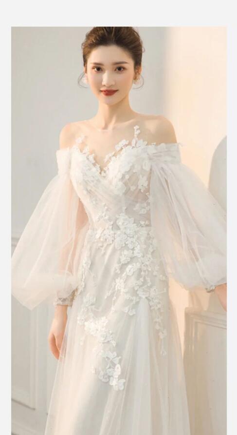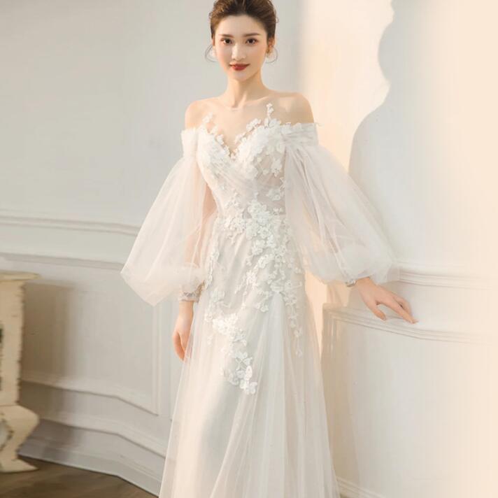 ウェディングドレス 花嫁 ドレス 編み上げタイプ 背開き 姫系ドレス プリンセスライン 結婚式ドレス 旅行撮影ドレス 。挙式 。ウエディング