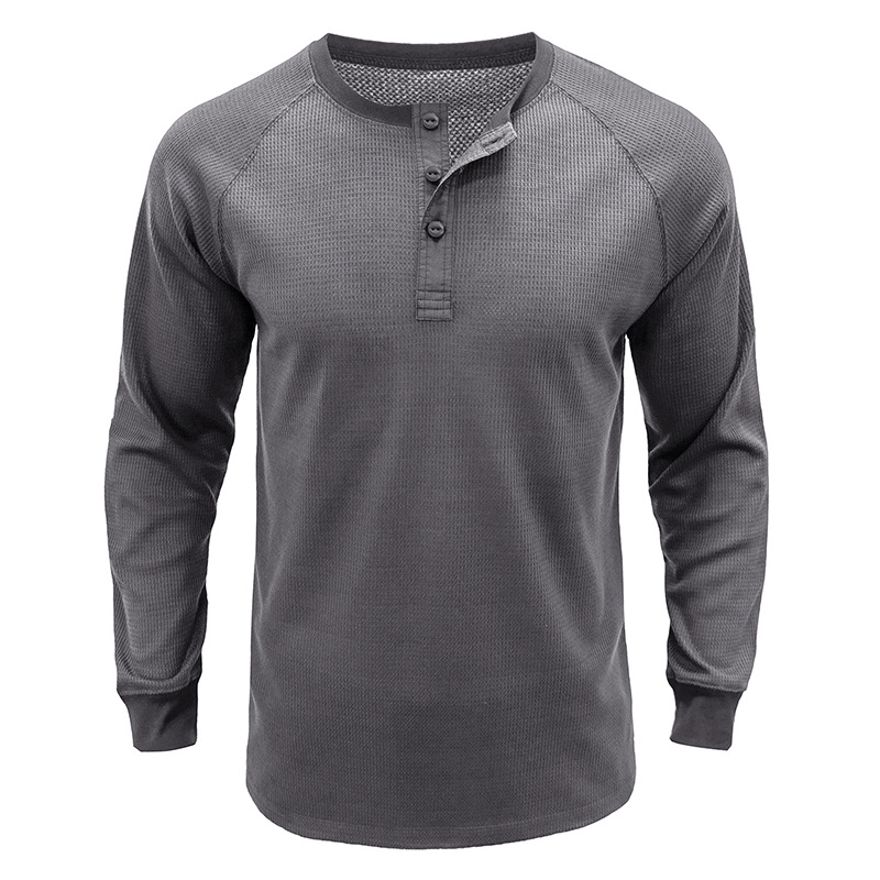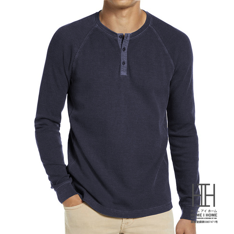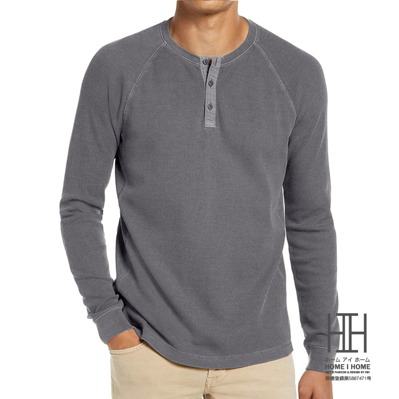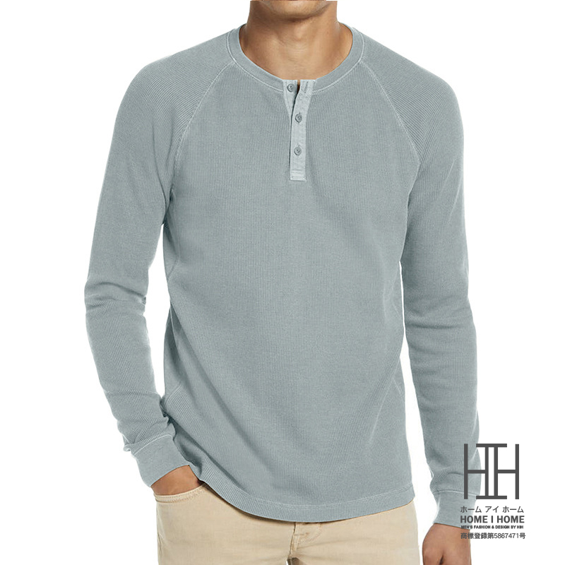 ヘンリーネックTシャツ 長袖 メンズ ロンT Tシャツ カットソー 通気 長袖Tシャツ ワッフル生地 欧米サイズ インナー トップス