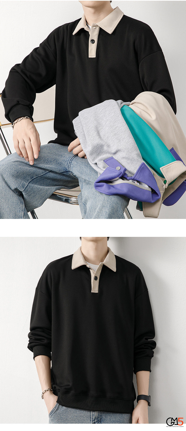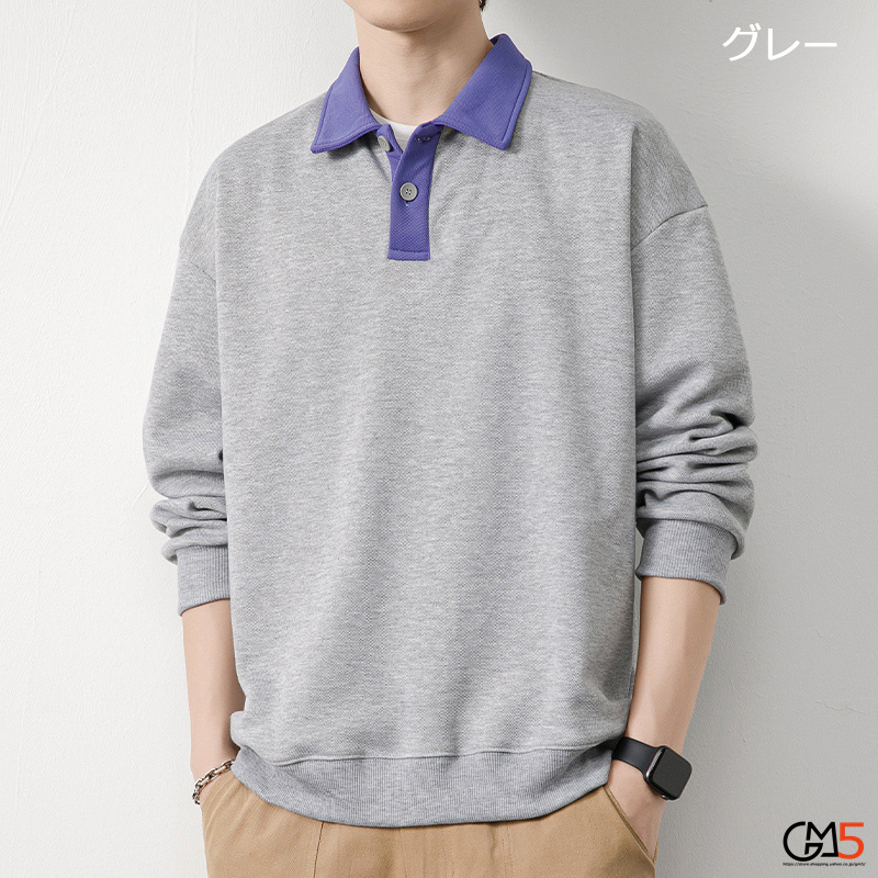 ポロシャツ メンズ 秋服 ロンT 切替 配色 長袖 トップス 大きいサイズ 秋物 カジュアル Tシャツ スポーツ