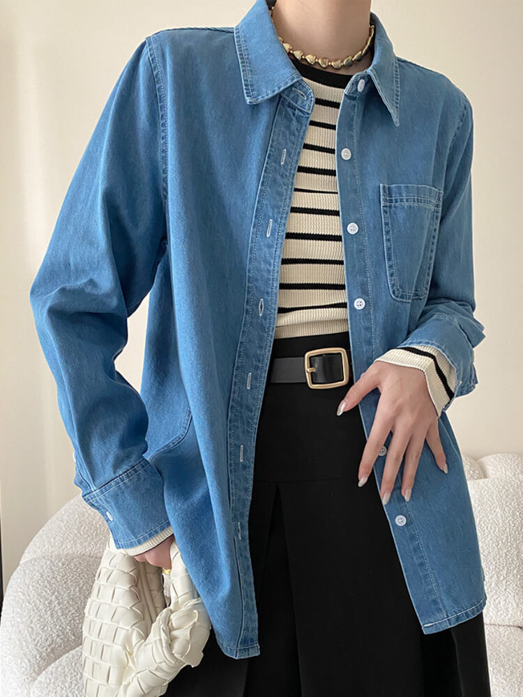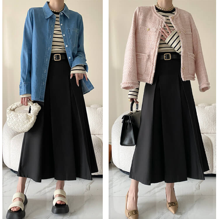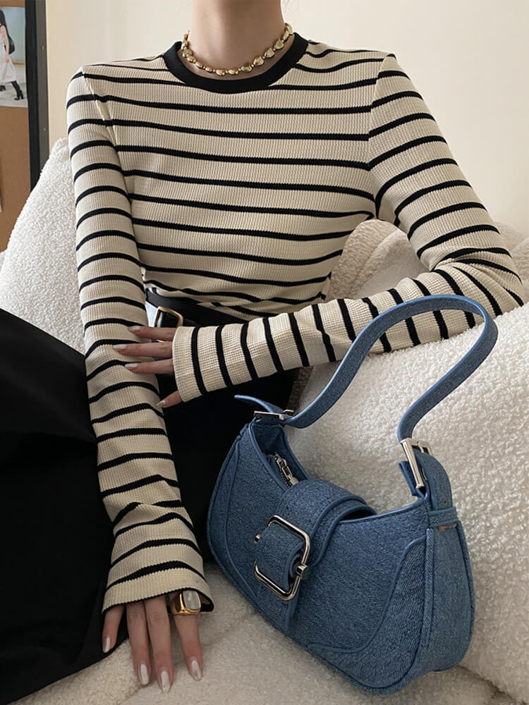 定番おしゃれのボーダーは1枚で着てもレイヤードコーデをしても◎。