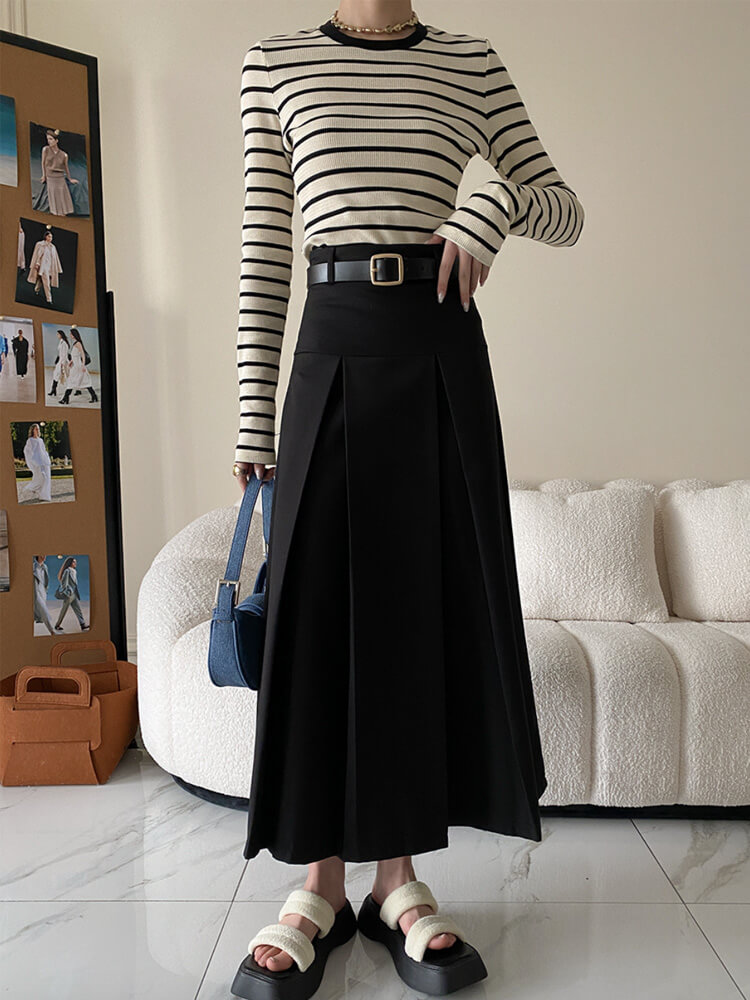 クルーネックラインを縁取ったバイカラーデザインでメリハリを。