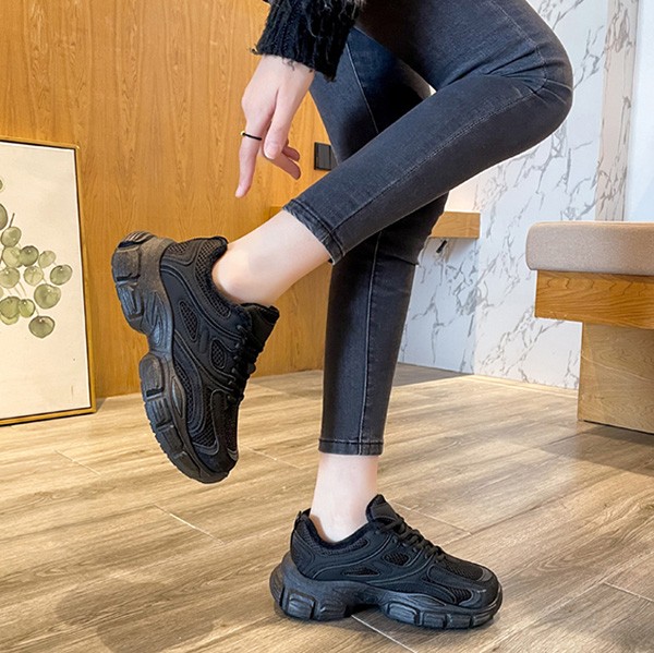 厚底スニーカー レディース シューズ ダッド スニーカー ウォーキングシューズ インヒール 白 黒 おしゃれ かわいい 。 靴 厚底 スニーカー 美脚 身長アップ 足長 脚長 黒S1T2