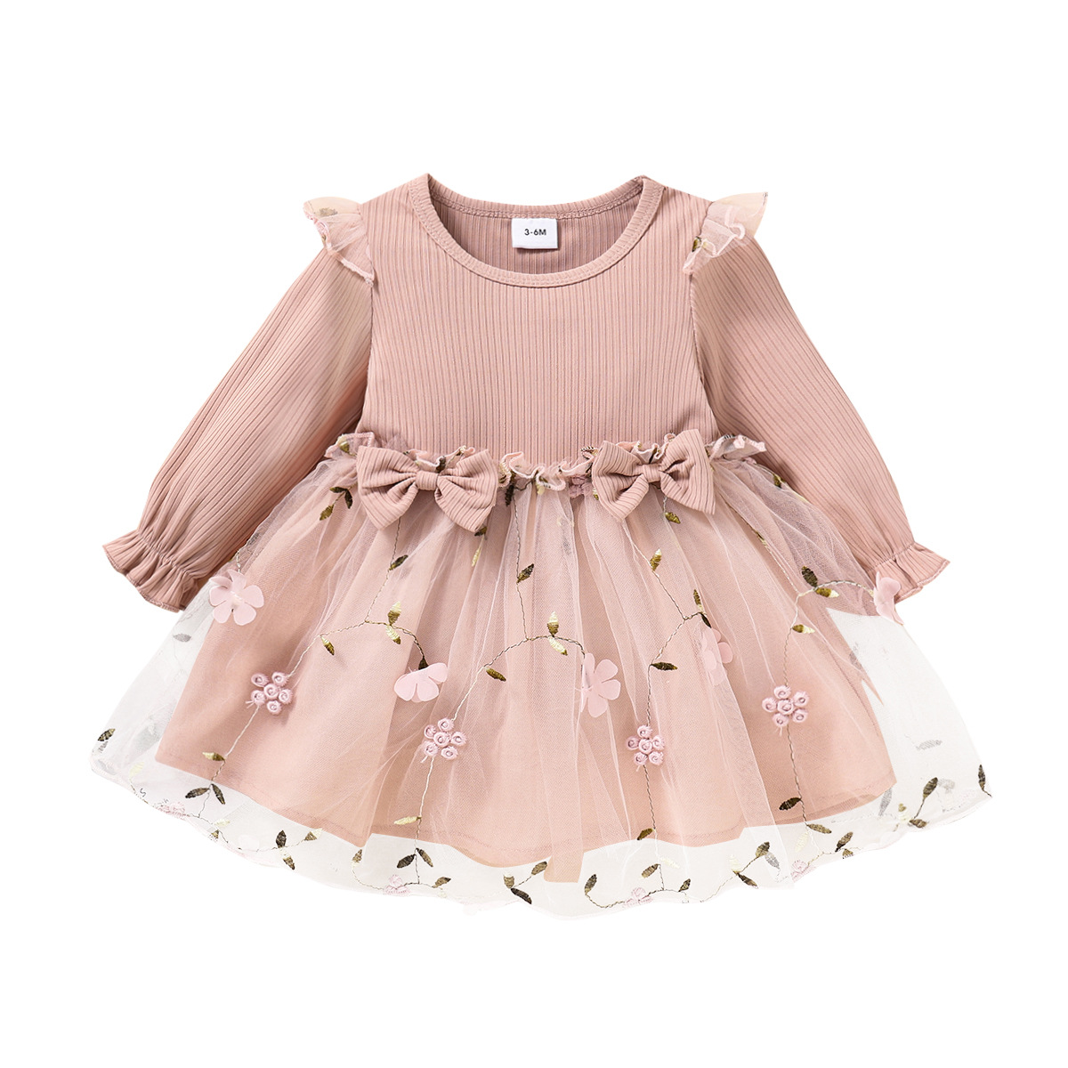 女の子 長袖 ワンピース キッズ チュールスカート 花柄 ベビー服 普段着 発表会 フォーマル 通園 可愛い 女児 七五三 結婚 入園式 通学 卒業式
