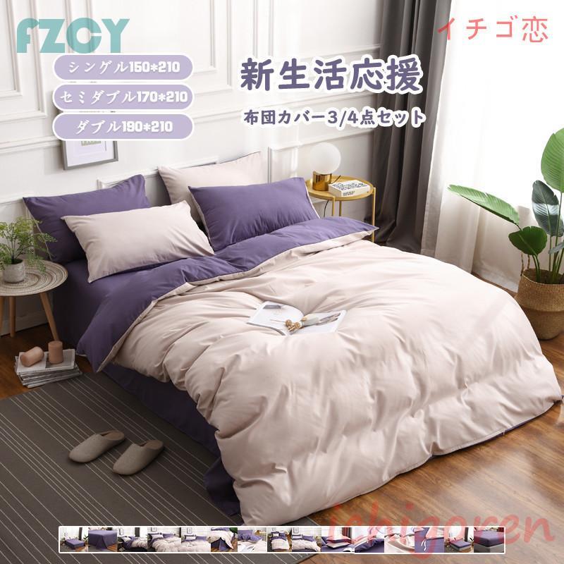 サイズ4点セット セミダブル 布団カバー:170*210CM(1) ボックスシーツ:123*200 27CM(1) ピロケース:46x63CM(2)